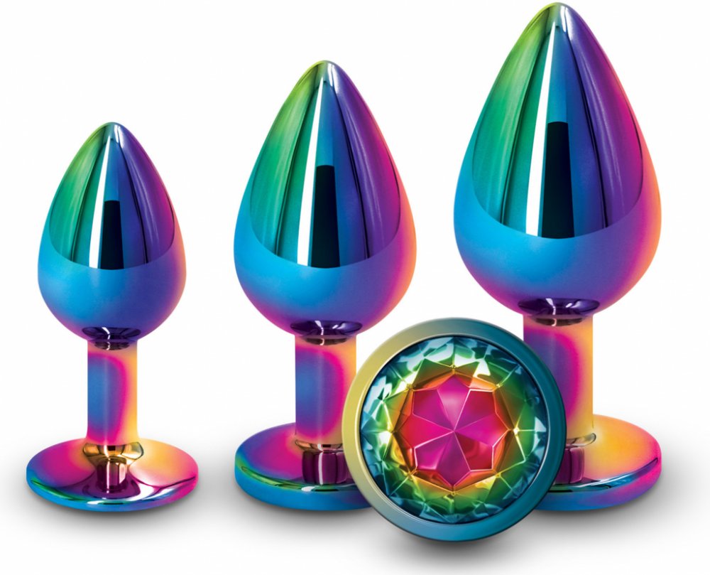 Sada duhových kovových análních kolíků s krystaly – od jemnosti po intenzituTato elegantní trojice kovových análních kolíků v oslnivém duhovém provedení je ideální volbou pro ty, kteří chtějí postupně objevovat nové úrovně potěšení. Každý kolík je zakončen třpytivým vícebarevným krystalem, který dodává luxusní vzhled a hravou energii.• 3 velikosti pro postupné zkoušení a rozvoj • duhový kov – styl...