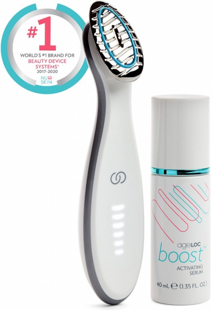 SEZNAMTE SE S TECHNOLOGIÍAGELOC BOOSTKdyž vaše pleť vypadá úžasně, cítíte se také tak a nevýrazný a unavený vzhled není nic pro vás – vy nádherně záříte! Ale kdo má na to čas,že ano?S ageLOC Boost a jeho Activating Serum to hravě zvládnete. Tento systém společně probouzí ve vaší pokožce to nejlepší, takže ta je viditelně jasnější, plnější a pružnější,vyrovnává tón pleti – to vše za pouhé dvě minuty jednou denně! Výsledky získané z nezávislého odborného hodnocení na základě12týdenní studie provedené u 32 žen ve věku 25 až 40 let, které používaly systém ageLOC Boost jednou denně po 12 týdnů.