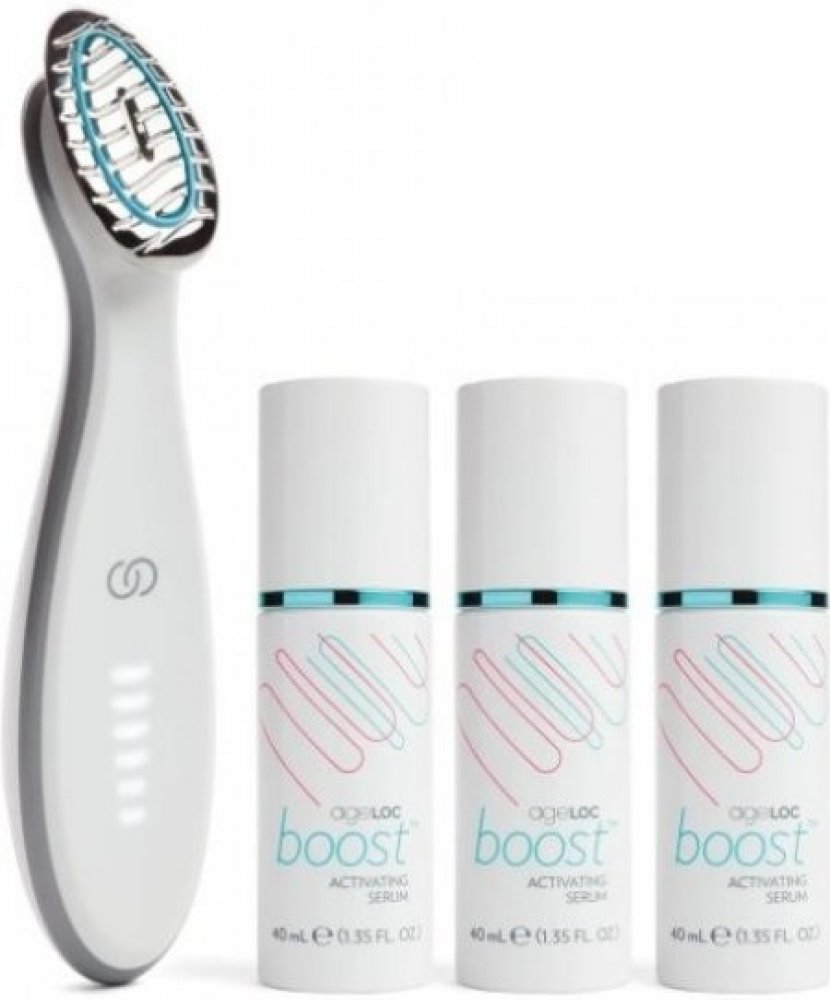 Velmi snadné použití, ageLOC Boost promění vaši pokožku z blah na brilantníběhem velmi krátké doby. Po vyčištění obličeje a tonizaci ošetřete jednu polovinu obličeje po dobu jedné minuty pomocí ageLOC Boost a ageLOC Activating Serum a poté druhou polovinu ošetřete další minutu. Není třeba boostovat delší dobu!! Pleť bude dokonale hydratována. Po použití séra, samozřejmě na závěr použijte oční a denní krém. Upozornění: se zařízením ageLOC Boost používejte pouze aktivační sérum ageLOC Boost, protože to bylo vědecky formulováno k vedení jedinečného mikroproudu s proměnlivým pulsem. Aktivační sérum ageLOC Boost skladujte mimo přímé sluneční světlo.