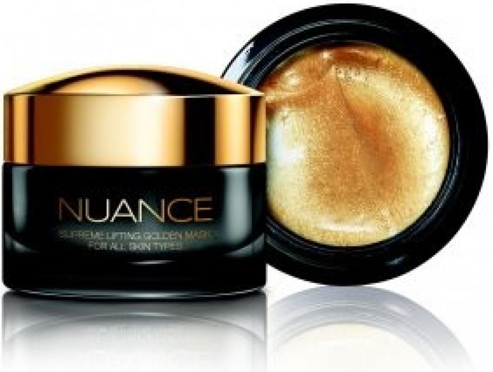 NUANCE Magical Supreme Zlatá maska je unikátní maska na ple? s okamžitým zpev?ujícím ú?inkem. Obsahuje výtažek z jantaru p?sobící jako silný antioxidant. Jantar prop?j?uje ple?ové masce zlatavou barvu. Patentovaná složka Repulpami ER z kv?t? bílého ibišku a plod? baobabu má intenzivní hydrata?ní a zpev?ující ú?inek a p?sobí proti projev?m stárnutí pleti a vráskám. Maska má velmi jemnou konzistenci a snadno se aplikuje. Po aplikaci masky bude vaše ple? zpevn?ná, rozzá?ená a sametov? hebká. Ple?ovou masku aplikujte 1x týdn? na vy?išt?nou ple? obli?eje, krku a dekolt. M?žete aplikovat i na okolí o?í. Nechte p?sobit 15-20 minut a poté odstra?te teplou vodou.