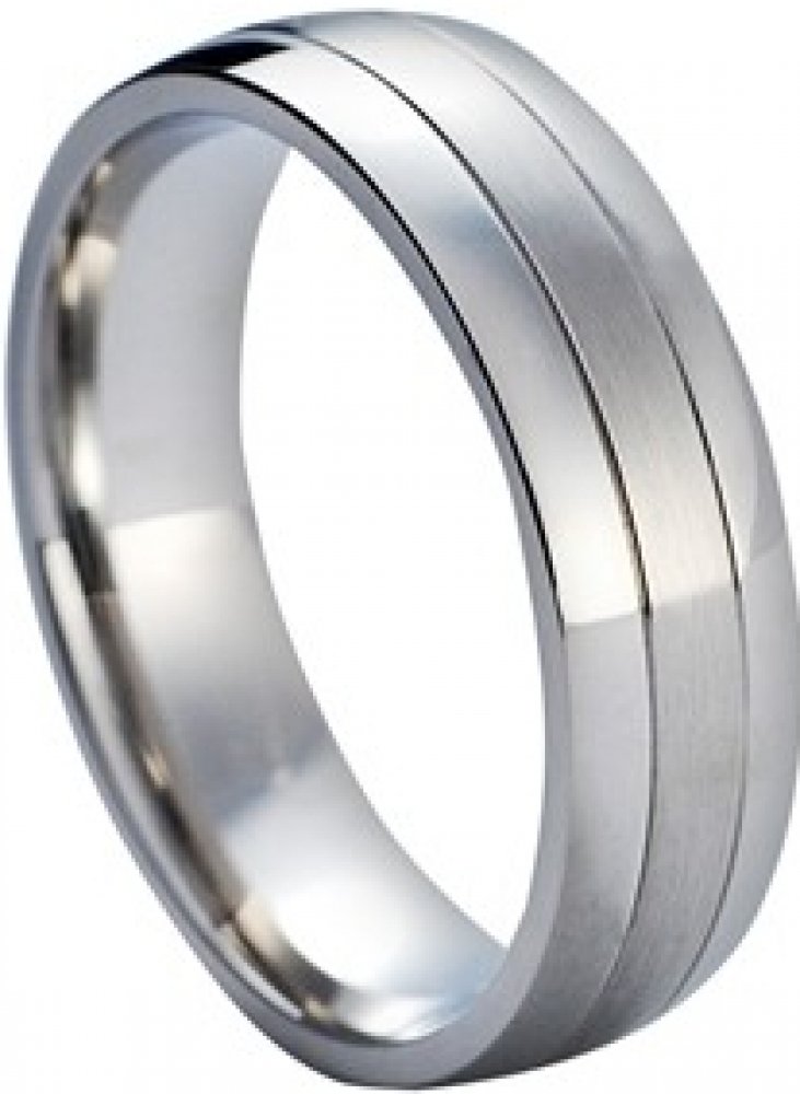 Ocelový snubní prsten zdobený matným pruhem ve středové linii