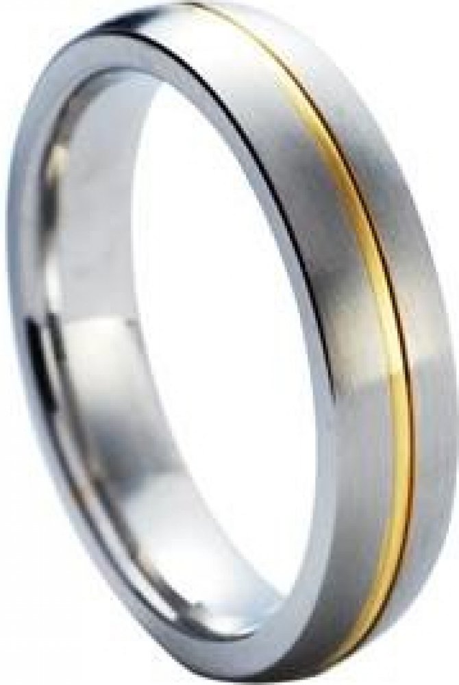 Ocelový snubní prsten zdobený zlaceným pruhem