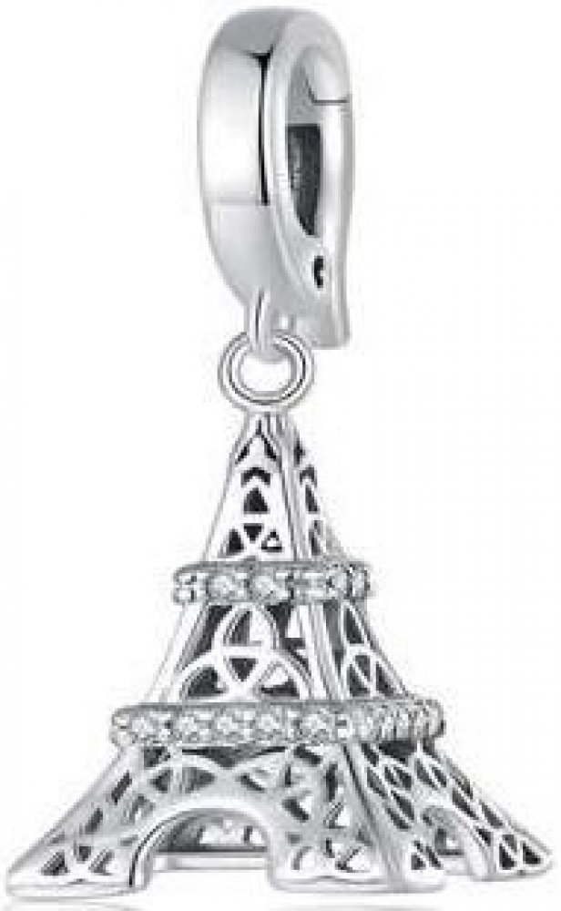Stříbrný přívěsek - korálek na náramek Eiffelova věž..Stříbrný přívěsek - navlékací korálek se zavěšenou Eiffelovkou.Korálek lze měnit a vzájemně kombinovat přesně podle aktuální nálady či příležitosti.Korálek je určen pro kombinování s dalšími šperky z naší kolekce navlékacích korálků. Lze navlékat na stříbrný řetízek nebo náramek.Díky tomuto speciálnímu navlékacímu korálku si můžete vytvořit jedinečný a neopakovatelný šperk, který navíc můžete měnit podle nálady a příležitosti. Stačí vyměnit korálky a máte nový originální náramek nebo náhrdelník.Korálek je vyroben ze stříbra s jakostním označením 925/1000 s povrchovou úpravou rhodium, které chrání stříbro před černáním a zvyšuje lesk šperku.Stříbrný šperk s povrchovou úpravou rhodiem je šperk vyrobený ze stříbra, který má na povrchu nanesenou tenkou vrstvu rhodia. Rhodium je vzácný kov ze skupiny platinových kovů, který je známý svou vysokou lesklostí, odolností a odolností vůči korozi. Povrchová úprava rhodiem se často používá právě na stříbrných špercích
