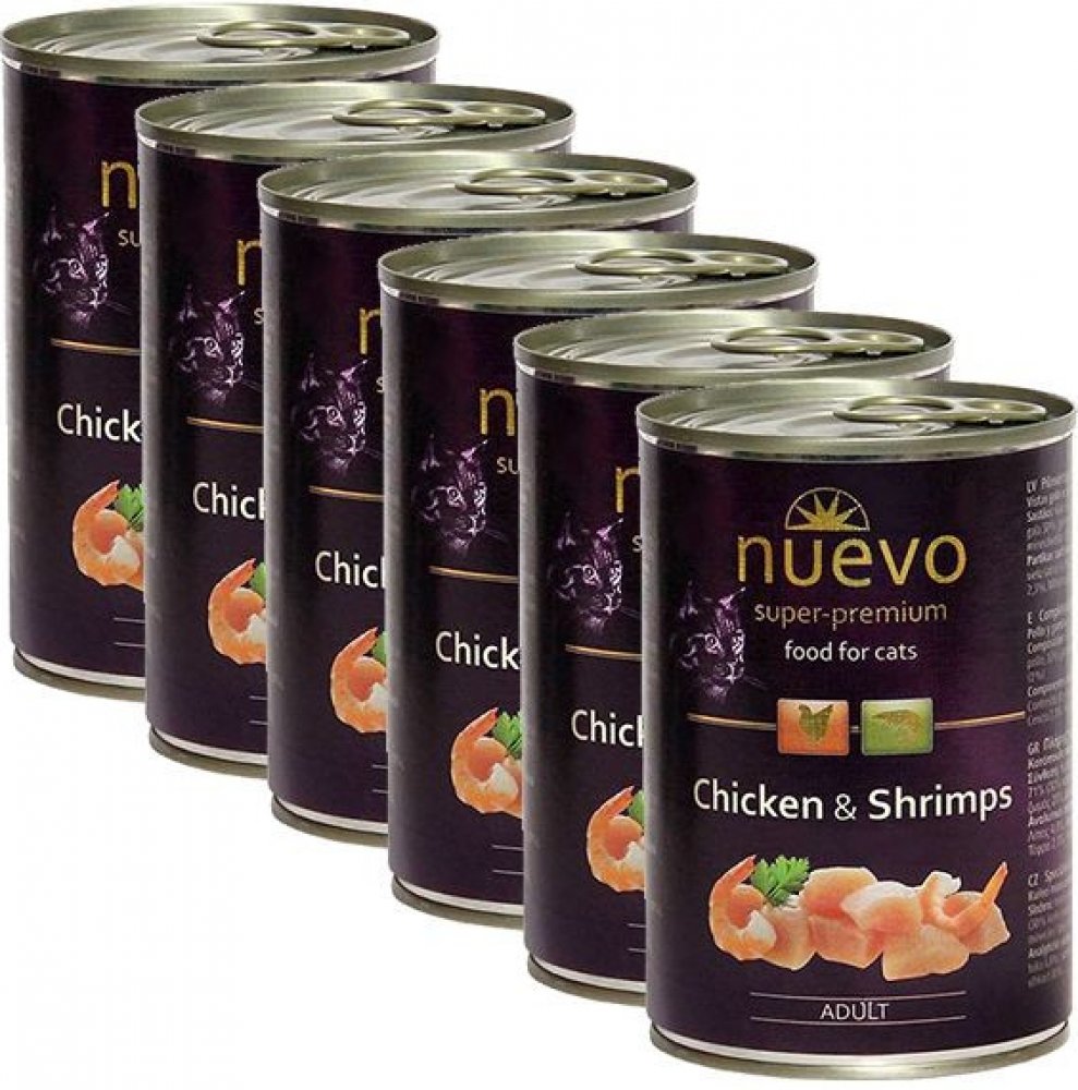 Konzerva Nuevo kočka adult Kuře a krevety je skvělý způsob, jak dodat Vaší kočičce všechny potřebné výživné látky. Strava je založena na výběrových zdrojích bílkovin, představovaných kuřecím masem a vynikajícími krevetami. Tuto kombinaci čerstvých přísad si zamilují i vybíravé kočky. Krevety jsou přirozeně bohaté na mastné kyseliny omega-3 a omega-6, které příznivě podporují růst a kvalitu srsti a pokožky. Složení: maso a vedlejší živočišné produkty 71 % (30 % kuřecí maso, 10 % krevety), vývar (28 %), minerální látky (1 %)