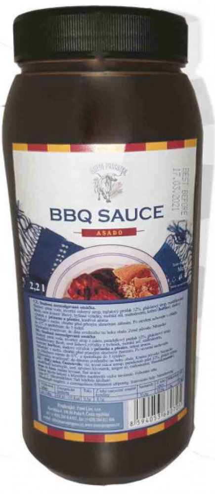 BBQ grilovací omáčka v gastro balení. lt;Pgt;Klasická BBQ grilovací omáčka s jemně zauzenou příchutí se hodí ke grilovaným žebírkům, ale i k jinému pořádnému kusu masa. Rozhodně nesmí chybět na žádné grilovačce. lt;/Pgt; lt;Pgt;lt;STRONGgt;Složení:lt;/STRONGgt; Pitná voda, invertní cukerný sirup, rajčatový protlak 12 %, glukózový sirup, modifikovaný škrob, ocet kvasný lihový, bylinné výtažky, mořská sůl, maltodextrin, koření (hořčice), sladový výtažek z ječmene a pšenice, kouřové aroma Může obsahovat: Hořčici, pšenice lt;/Pgt; lt;Pgt;lt;STRONGgt;Obsah balení:lt;/STRONGgt; 2,25 l lt;/Pgt; lt;Pgt;lt;STRONGgt;Země původu:lt;/STRONGgt; Německolt;/Pgt;