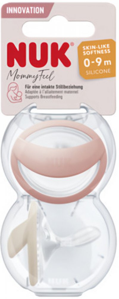 Kojenecký dudlík NUK MommyFeel 0-9 měsíců. Měkký a důvěrně známý silikon je měkký jako pokožka a tvarovaný jako maminčin prs. Lepší tvar pro správný vývoj zoubků, čelisti i patra ve srovnání s běžnými tvary dudlíků na trhu. Další výhodou dudlíku je, že se savičky dotýkají pouze rty miminka. Jemná a citlivá pokožka kolem úst tak zůstává nezakrytá a může volně dýchat. To znamená, že NUK MommyFeel nezpůsobuje otlaky a předchází podráždění pokožky. Dudlíky NUK jsou kompletně vyráběny v Německu. Samozřejmostí je, že neobsahují BPA a jsou v souladu evropskou bezpečnostní normou EN1400. 2 kusy v balení, opakovaně použitelná krabička.
