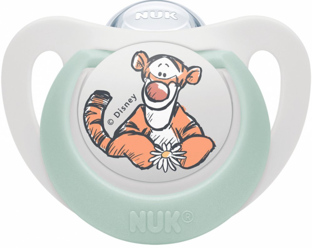 NUK Trendline dudlíky z naší kolekce "Medvídek Pú" jsou dekorovány roztomilými motivy populárních Disneyových postaviček Medvídka Pú a tygříka pro každého malého Disney fanouška. Anatomicky tvarovaná vnější část dudlíku nezpůsobuje otlačeniny, a proto je dudlík ideální pro pohodlné usínání na boku i na břiše. Průhledný silikon se snadno čistí, je chuťově neutrální, bez zápachu a je odolný vůči vysokým teplotám. Neobsahuje škodlivé látky, je odolný při vyváření a má hladký povrch.