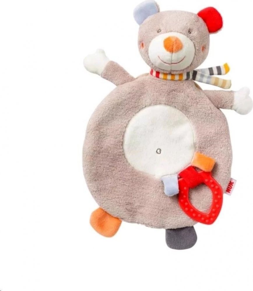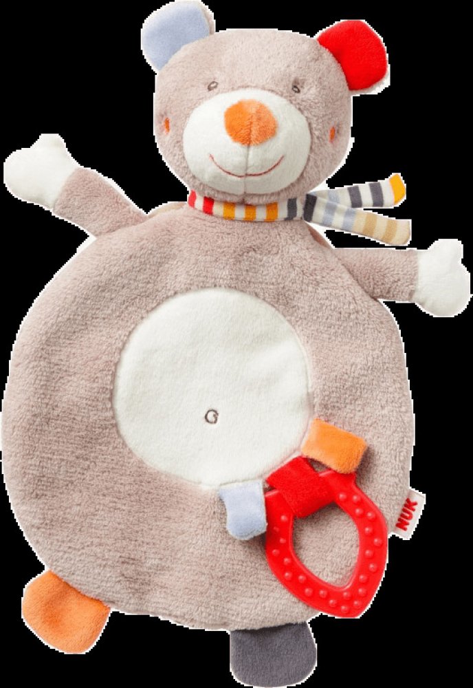 NUK mazlící sloník pro miminko. Dětská plyšová dečka NUK Sloník je veselá a hebká hračka, která díky zabudovanému praktickému kousátku pomáhá při prořezávání prvních zoubků miminka. Kromě toho podporuje u dětí vývoj hmatu. Na dečce jsou různé povrchy, textilie a látkové nášivky. Hračka Sloník má krásné barvy. Učí dítě empatii a interakci, pomáhá v emocionálním a sociálním vývoji. Tvary a barvy hračky lákají pozornost dítěte, učí ho a baví, rozvíjí dětskou fantazii. Plyšový mazlíček je vyroben z velmi příjemného materiálu, ideální pro miminko během spaní. Má zabudované kousátko a pomáhá při prořezávání zoubků. Vhodně pro děti od prvních dnů života.