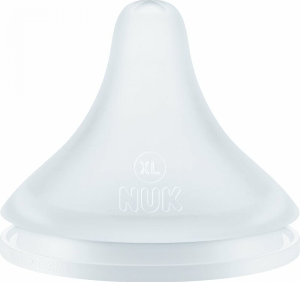 NUK Perfect Match Size XL (6+m), 2 ks, Savičky na láhve pro děti, Pomáhá dětem snadněji pít z lahve, usnadňuje přechod z kojení na lahvičku a skvěle se přizpůsobuje dětským ústům. Savička na lahev NUK Perfect Match Size XL (6+m) svým tvarem připomíná maminčino prso, a proto ji děti snadněji přijmou. Vlastnosti: větší průtok – vhodná pro hustou stravu vyrobeny z měkkého silikonu dokonale se přizpůs...