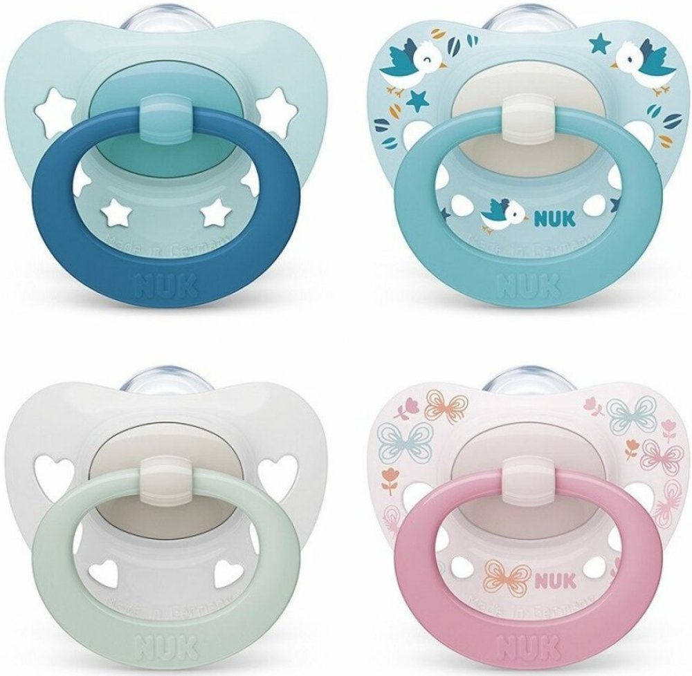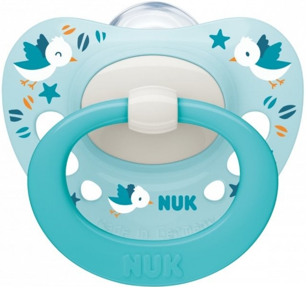"NUK Signature silikonový dudlík pro správný vývoj ústní dutiny dítěte, věk 0–6 měsíců, 1 ks box - Vylepšený tvar dudlíku NUK – dudlík má stejný tvar jako matčina bradavka při kojení, dokonale padne do úst dítěte při sání - Díky užšímu a ploššímu tvaru sací části se tlak na zuby a čelisti - Plochá sací část a hladká spodní strana přinášejí dítěti příjemný pocit a podporují tak přirozené sání - Odolná, znovupoužitelná cestovní krabička - Věk 0–6 měsíců, bez BPA, 1 ks v balení Nový silikonový dudlík: tvar dudlíku je stejný jako matčina bradavka při kojení Každý den čeká na vaše děti mnoho vzrušujících dobrodružství, během nichž je dudlík nepostradatelným společníkem, který jim dává pocit jistoty a bezpečí. Ať už vaše dítě rozruší neznámé tváře, nové zvuky či prostředí, známé instinktivní sání dudlíku je opět dokáže rychle uklidnit. Abychom tento pocit zintenzivnili, vyvinuli specialisté ještě lepší tvar dudlíků NUK. Sací část dudlíku napodobuje tvar matčiny bradavky při kojení, takže se při sání dokáže optimálně přizpůsobit dětským ústům. Díky úzkému a plochému tvaru sací části se tlak na čelisti i zuby , a poskytuje tak jazyku dostatek prostoru pro přirozené sací pohyby. Dudlíky NUK se dokonale přizpůsobí dětským ústům a děti si na něj velmi rychle zvyknou*, což poskytuje ještě větší pohodlí jak rodičům, tak dětem samotným. Doporučováno experty: nové dudlíky NUK uklidní dítě lépe než kdy dříve Protože je pro nás celkový vývoj dítěte velmi důležitý, chceme, aby každý dudlík značky NUK podpořil přirozený a zdravý vývoj dětské čelisti. Dudlíky NUK jsou na základě nejnovějších lékařských poznatků uzpůsobeny tak, aby dítě uklidnily ještě lépe než kdy dřív, čehož jsme dosáhli díky tvaru, který je dítěti velmi dobře známý. Kojící matky potvrzují, že používání dudlíků NUK kojení nijak neovlivňuje*. Maminky tak mají více času na odpočinek. Kromě toho používání dudlíků NUK nezpůsobuje žádné ortodontické potíže, jako např. křivé zuby či deformaci čelisti. Plochý a úzký tvar sací části dudlíku minimalizuje tlak na zuby i čelist a nechává v ústech spoustu místa pro jazyk, a tedy i pro přirozené sací pohyby. Díky tomu jsou dudlíky NUK vysoce hodnocené a doporučované porodními asistentkami, pediatry i ortodontisty. Výsledky testů mluví i ve prospěch nového typu dudlíku NUK: 100 % oslovených ortodontistů potvrzuje, že nezpůsobuje žádné potíže**, 95 % dětí tento dudlík rychle přijme*, 90 % maminek jeho používání doporučuje* a 92 % kojících matek potvrzuje, že používání dudlíku kojení nijak neovlivňuje. Nezávislý průzkum trhu, 307 oslovených matek, Německo 2017 ** Nezávislý průzkum trhu, osloveno 50 ortodontistů, 50 pediatrů a 50 porodních asistentek, Německo 2017 Silikonový dudlík NUK Happy Days – pro veselý a barevný každodenní život dítěte Se svými jasnými a veselými motivy, přinášejí dudlíky NUK Happy Days každý den spoustu barev a radosti vašemu malému pokladu. Praktický kroužek na dudlíku je vyroben z vysoce kvalitního polypropylenu a je vhodný pro uchopení i pro ty nejmenší ručičky. Průhledný silikon se snadno čistí, je chuťově neutrální, bez zápachu a je odolný vůči vysokým teplotám. Neobsahuje škodlivé látky, je odolný při vyváření a má hladký povrch. Všechny dudlíky NUK mají NUK Air System, který umožňuje únik vzduchu ze savičky, aby jej dítě nepolykalo. Díky tomuto systému zůstává dudlík měkký a snadno se přizpůsobí dětským ústům. Multifunkční balení Dudlík NUK Happy Days má navíc svou vlastní praktickou krabičku. Ta se postará o hygienické čištění dudlíku v mikrovlnné troubě, cestování i skladování v čistotě a bezpečí" Kojenecký dudlík NUK Signature 0-6 měsíců. Dudlík má krásný barevný obrázek. Ortodontický tvar podporuje vývoj celé ústní dutiny dítěte. Dudlík je vylepšený a má ještě plošší tvar. Tenký a úzký krček savičky – tlak na čelist a zoubky. Je vyroben z vysoce kvalitního plastu a silikonového dudlíku. Náustní kryt a kroužek jsou vyrobeny z polypropylenu a neobsahují BPA. Výhodou silikonu je to, že je bez zápachu a lehce se čistí. Neobsahuje BPA. Velikost 1 (0-6 měsíců). Znovu použitelná krabička na dudlík.