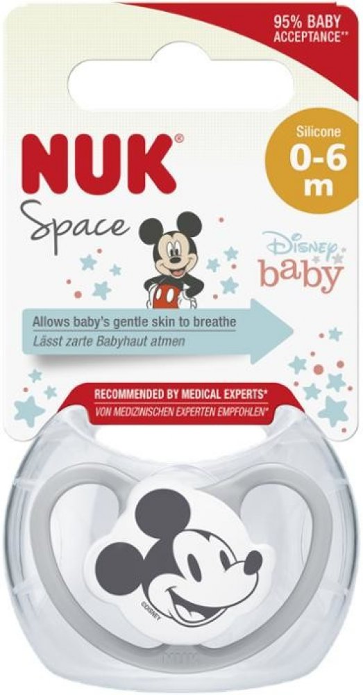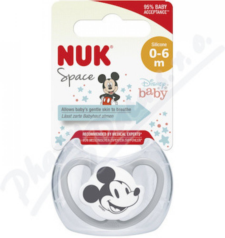 NUK Disney Mickey silikonový dudlík pro správný vývoj ústní dutiny dítěte, věk 0-6 měsíců, 1 ks v balení