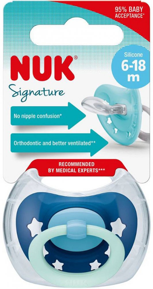 Silikonový dudlík NUK Signature, vhodný tvar pro vývoj čelisti
