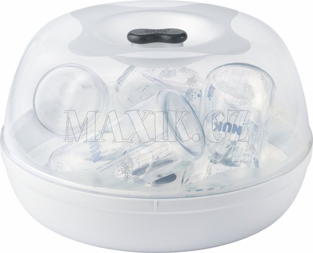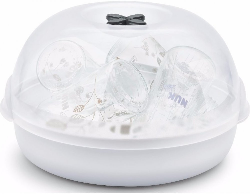 Miminka vyžadují důkladnou péči – předevšim v oblasti krmení. Aby bylo jednoduché vaše děti několikrát denně nakrmit a pokaždé mít k dispozici čistou a sterilizovanou lahvičku, vytvořili jsme NUK Sterilizátor do mikrovlnky, který účinně sterilizuje jakékoliv NUK výrobky během pouhých 4 minut.