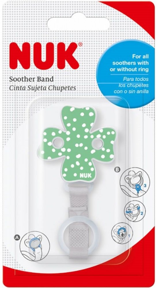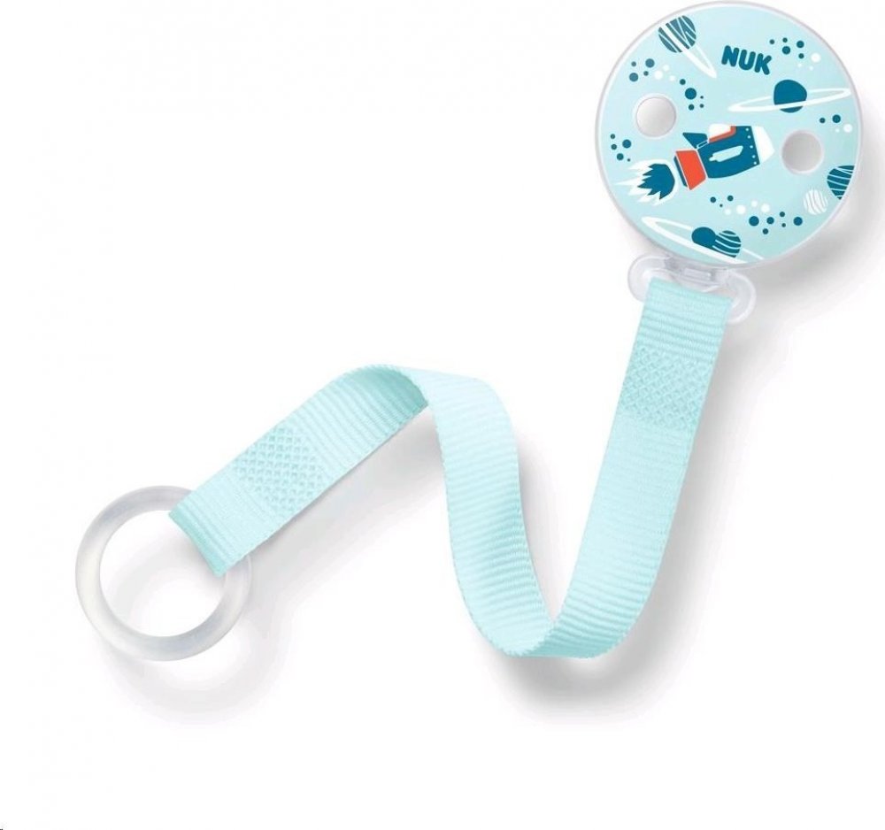 Veselá, barevná stužka na dudlík NUK s flexibilním kroužkem, je skvělým pomocníkem pro miminka i rodiče. Nenahraditelná zvlášť během cestování a procházek. Díky sponě dudlík nespadne na zem a nezašpiní se a neztratí se. Má snadné použití a je vyrobena tak, aby se dala připnout k dětskému oblečení. Pestré barvy a veselé obrázky dítě zaujmou. Určeno pro děti od prvních dnů života. Stužka je vhodná i na dudlíky bez kroužku díky natahovacímu silikonovému kroužku. Systém klipu je bez ostrých hran pro otevírání a zavírání jednou rukou.