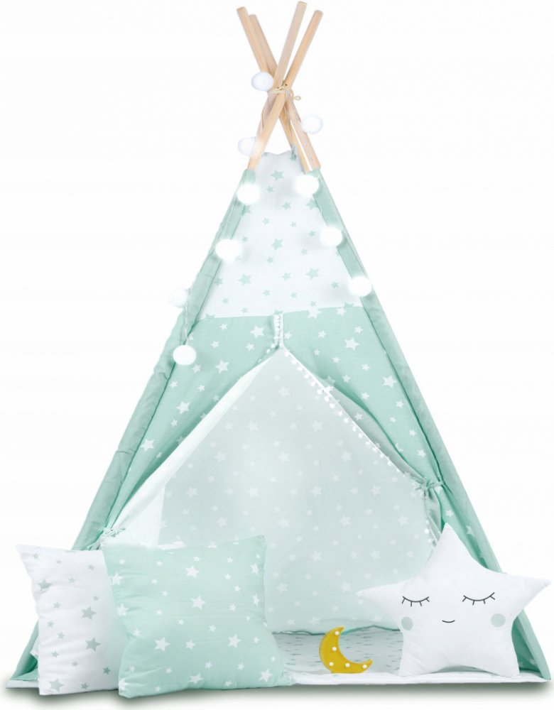 Nukido Dětský stan se světlem mátový s hvězdami
