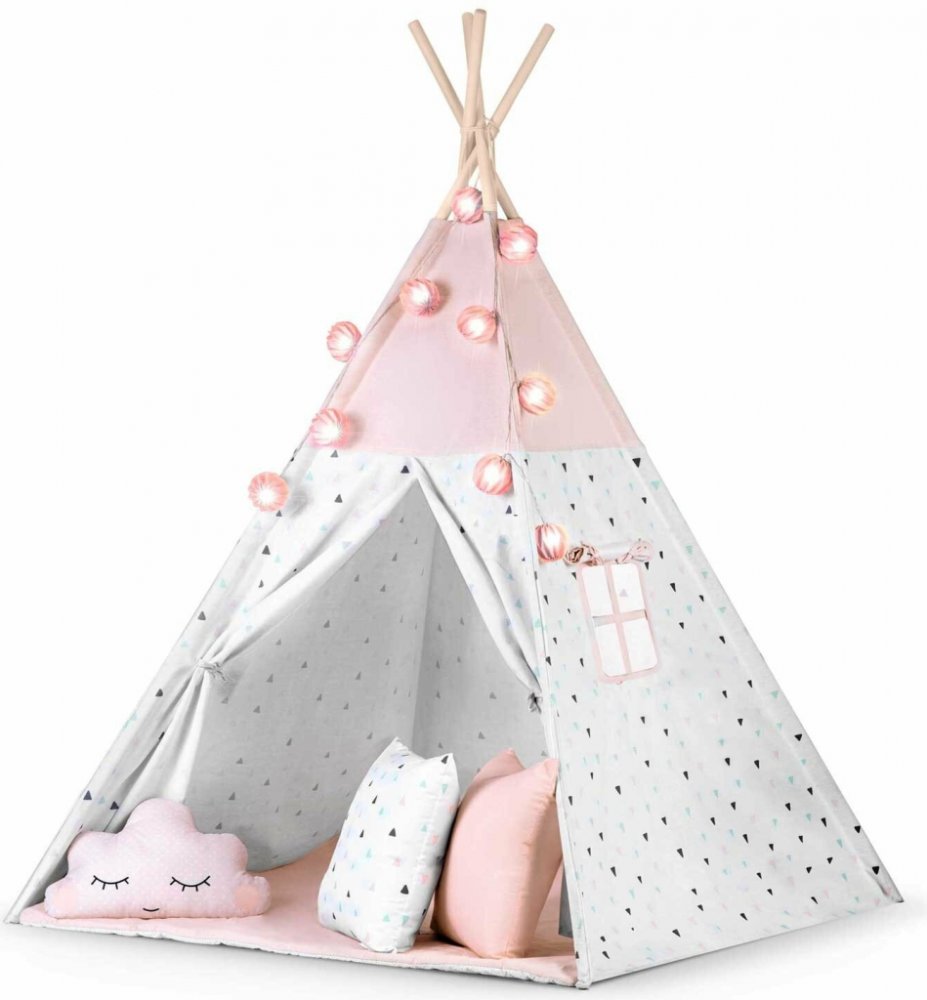 Nukido teepee stan pro děti s girlandou a světly růžový