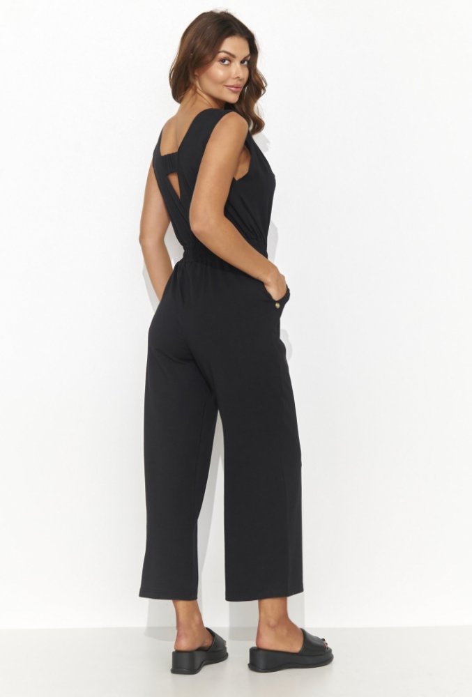 Dámský letní overal, který jistě upoutá pozornost svým jedinečným stylem. Má stahovací šňůrku v pase, která zvýrazňuje ženskou siluetu. Široká ramínka a rozšířené nohavice v délce 7/8 dodávají lehkost a volnost, zatímco praktickým doplňkem jsou zasouvací boční kapsy. Je ideální volbou pro letní dny, zaručuje pohodlí a módní vzhled. K dispozici je v rozmanité škále barev: zemitě hnědé, černé, khaki, světle béžové, minerální a malinové, takže si každá žena najde svůj oblíbený odstín. Tento oblek je nejen stylem plným funkčnosti, ale také odrazem současných trendů. Oblečte si ho a udělejte z každého outfitu nezapomenutelný kousek. Obujte si ho k pohodlným sandálům a vyrazte na dovolenou!