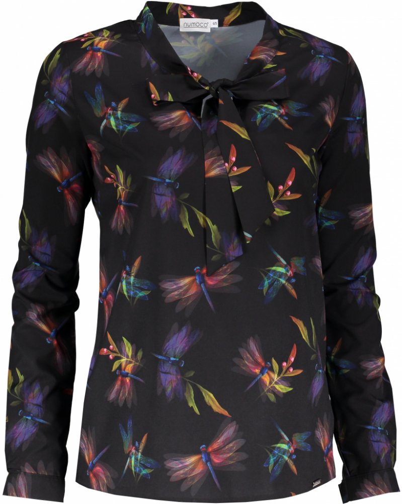 Dámská zelená halenka s vázáním. Tato halenka značky Numoco je ušitá z příjemného materiálu, má tmavě modrou barvu a je ozdobená vzorem barevných vážek. Rozměry jsou měřené na plocho - bez roztahování materiálu (+/- 2 cm). Modelka na fotografii je vysoká 170 cm a předvádí halenku ve velikosti S. Rozměry: S M L XL Od podpaží k podpaží 47 50 54 58 Pas 45 48 52 55 Boky 48 53 58 61 Délka od podpaží 40...