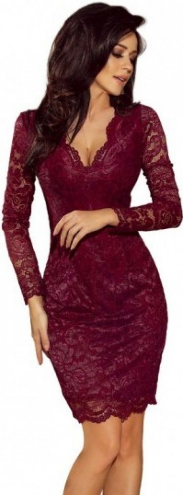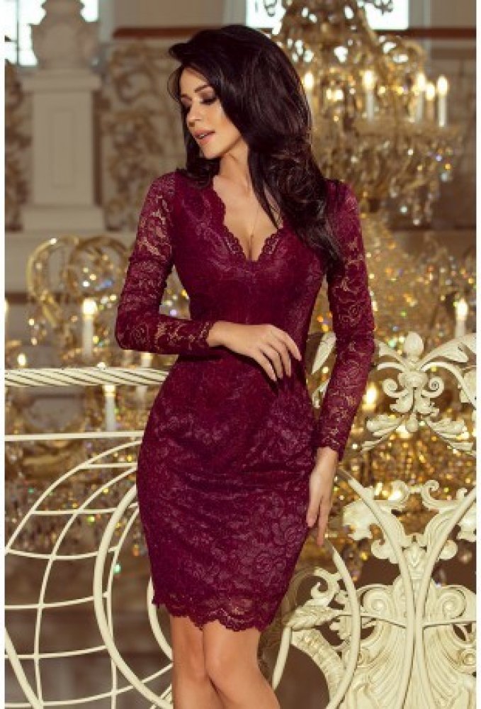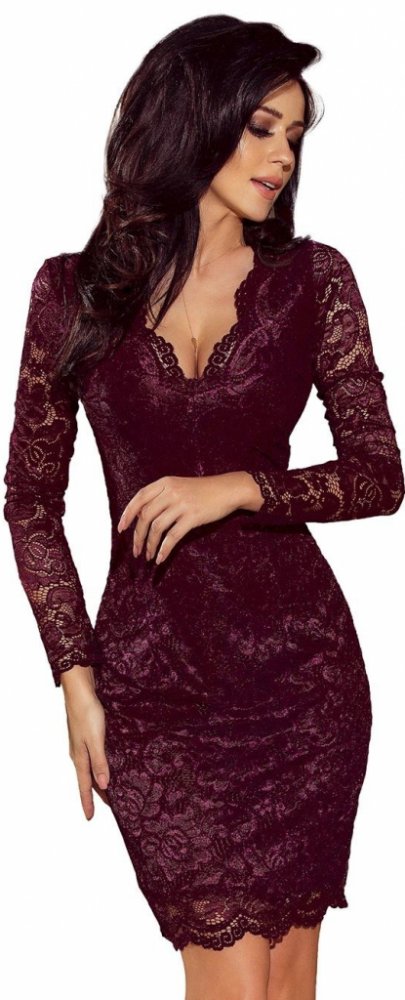 Numoco luxusní dámské krajkové šaty Olivia 170-5 vínová