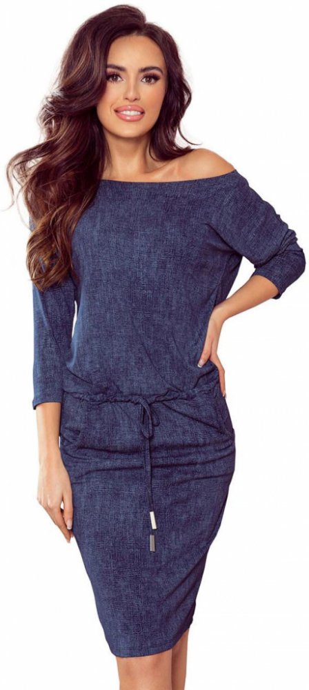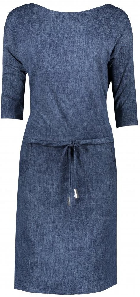 Sportovní šaty s kapsami, zavazováním v pase a 3/4 rukávem. Vyrobeno z elastické polské viskózy v barvě tmavé džínoviny. Při výběru velikosti zvažte obvod boků. Značka Numoco. Polský výrobek.Sportovní šaty - tmavě modré džíny
