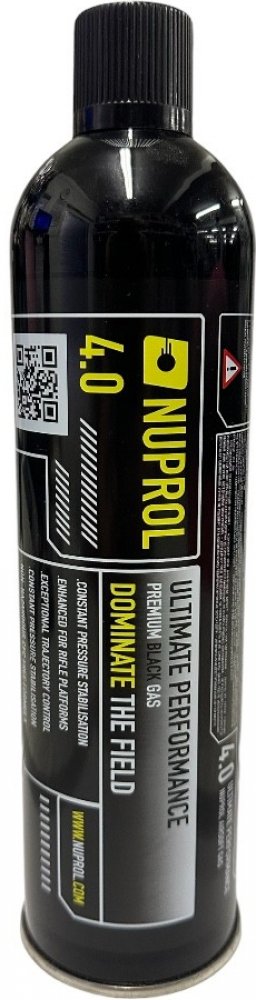 Ultimate Power Black Gas 4.0 od NUPROL je nejsilnější airsoftový plyn, který poskytuje maximální výkon i v chladných teplotách. Je navržen pro použití během jara, podzimu a hlavně zimy, kde díky tlaku 200 PSI při 25 °C zajišťuje optimální fungování plynových airsoftových zbraní s upgradem spouštového mechanismu a dalších vnitřních dílů. Plyn je vhodný pro výkonné plynové pušky. Díky odolné kovové trysce je plnění zásobníků snadné a bezpečné. Tato verze obsahuje v plynu i silikon, který se postará o údržbu těsnění a promazání vnitřního mechanismu zbraně. Speciální směs plynů NUPROL brání korozi vnitřních dílů a snižuje jejich opotřebení.
