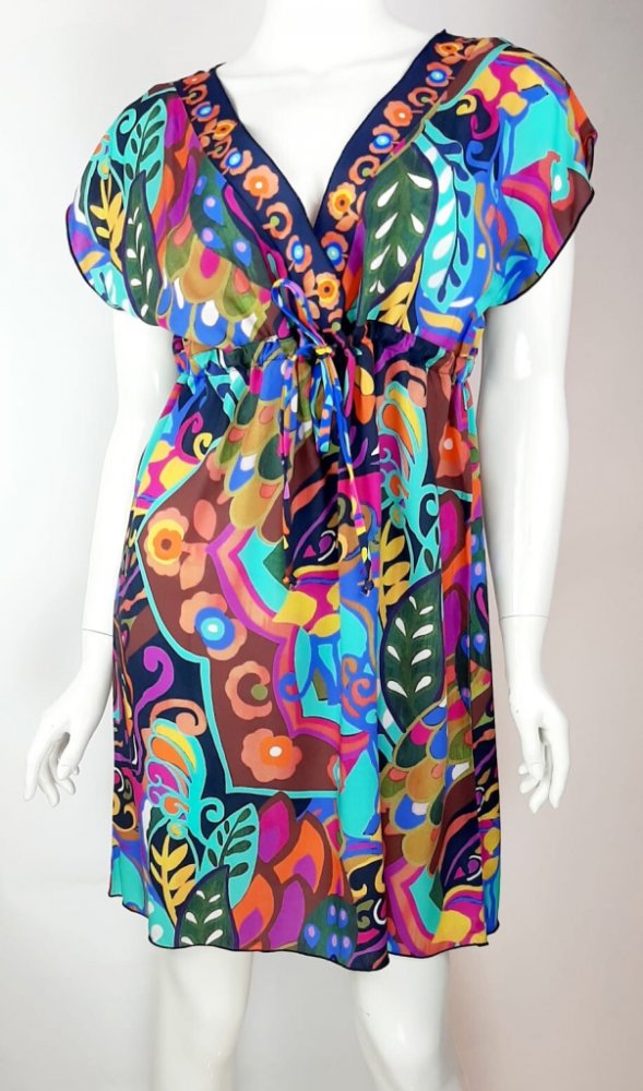Plážové šaty v atraktivním stylu. Lehký materiál krásné doplní různé plavky . Volný střih zaručí snadné oblékání. Materiál: 100% polyester