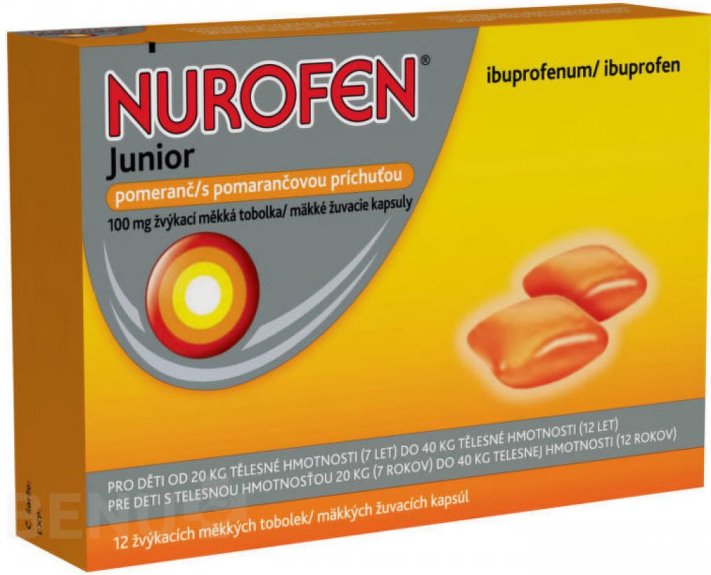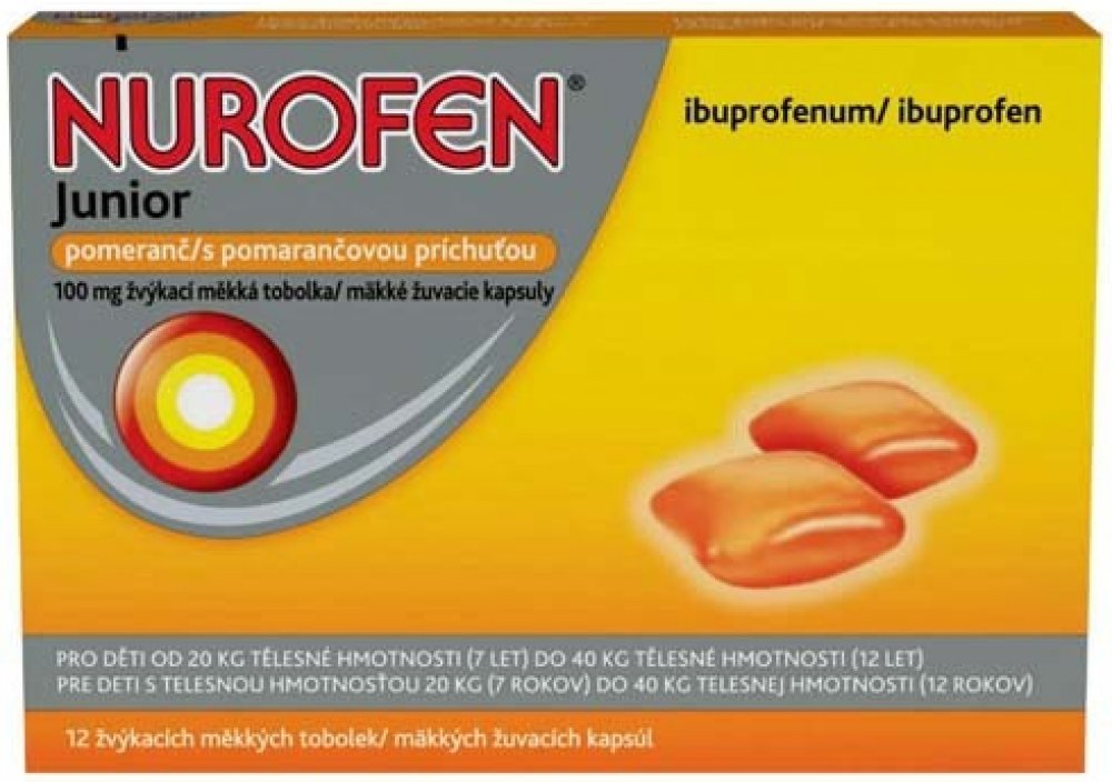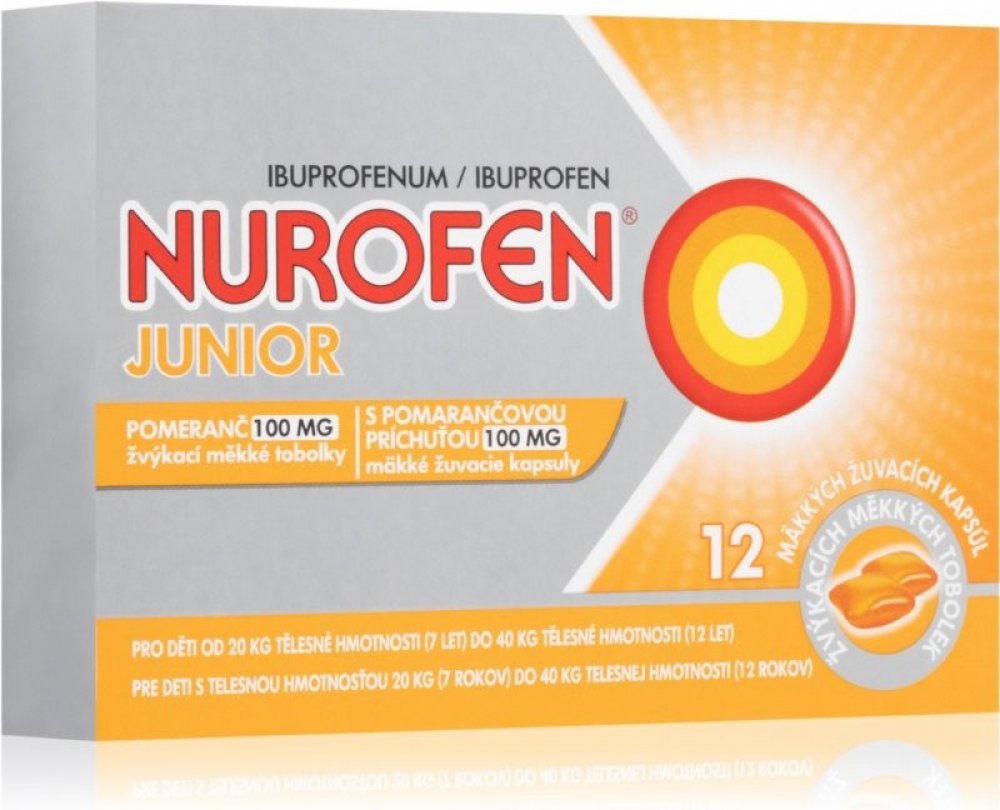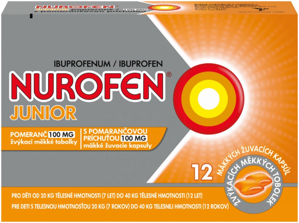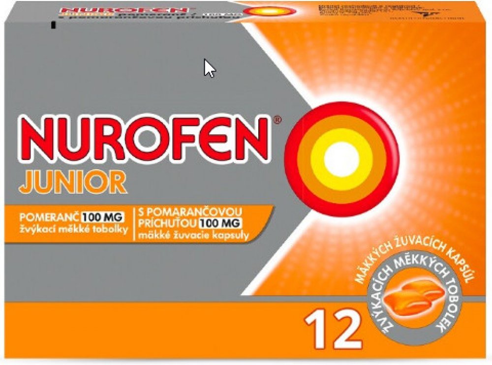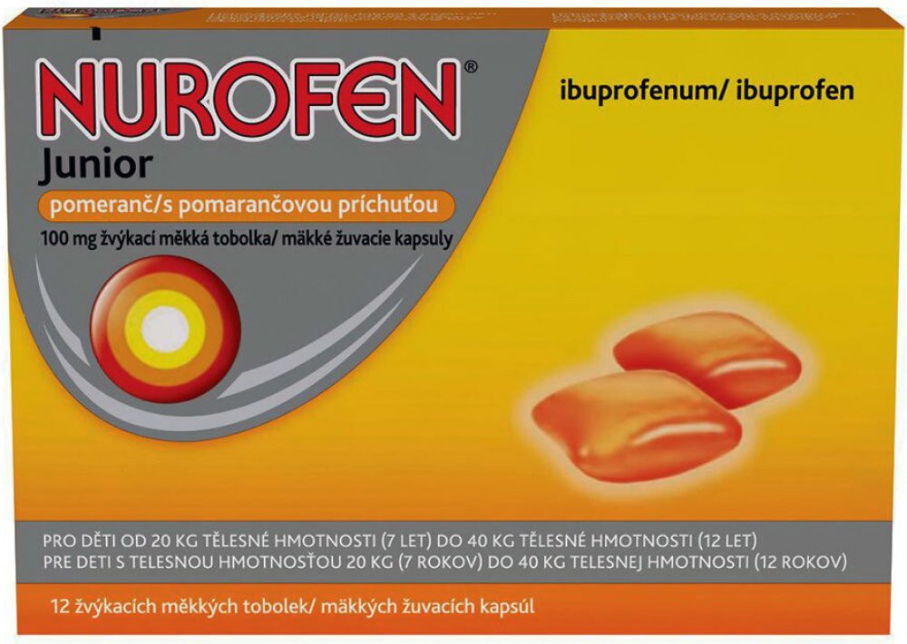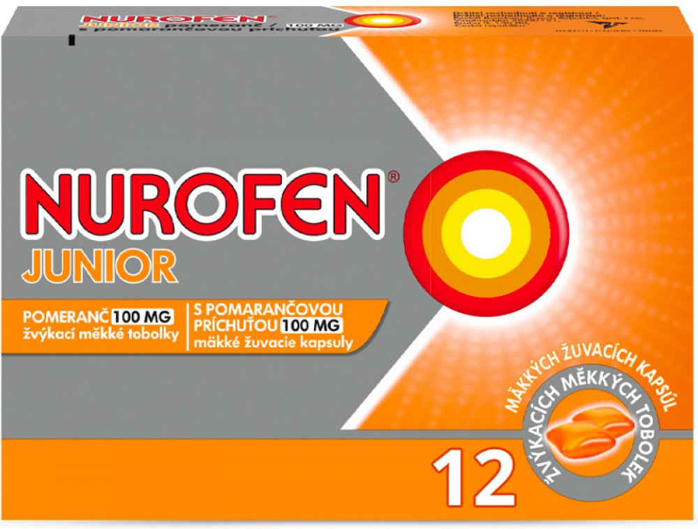 Slovenská republika: Nurofen Junior s pomarančovou príchuťou 100 mg, mäkké žuvacie kapsuly