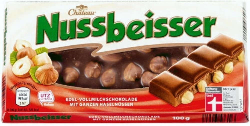 Vynikající křupavá mléčná čokoláda s lískovými oříšky. Vyrobeno v Německu. S celými lískovými ořechy CERTIFIKÁT UTZ o použití pravých kakaových bobů pro výrobu čokolády. jedna z nejoblíbenějších čokolád na trhu
