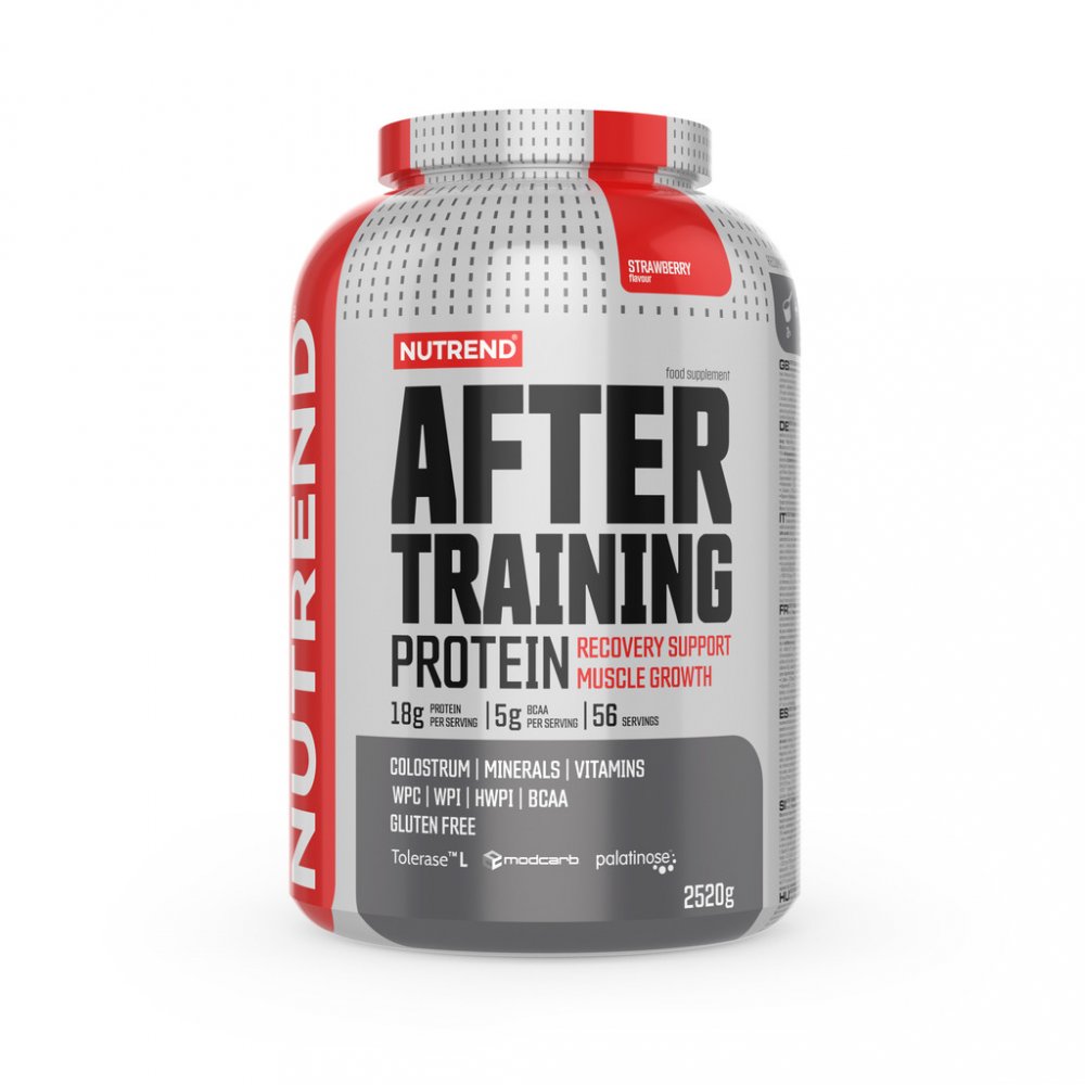 Součástí této směsi je značkový hydrolyzovaný syrovátkový izolát Hydrovon™, prémiový syrovátkový izolát (WPI) a prémiový ultra-filtrovaný koncentrát mléčné syrovátky (WPC). Aby svalstvo mohlo růst, je třeba ukončit katabolickou reakci zapříčiněnou fyzickou aktivitou, doplněním glykogenu díky speciální směsi sacharidů, které jsou v produktu AFTER TRAINING PROTEIN zastoupeny značkovými surovinami Palatinose™ a ModCarb™, které zajistí pozvolné uvolnění glukózy. Unikátní složení doplňuje bioaktivní kolostrum, vysoký obsah větvených aminokyselin (BCAA), extrakt z Ginkgo biloby, směs speciálně zvolených vitamínů a minerálů pro snížení únavy a vyčerpání.