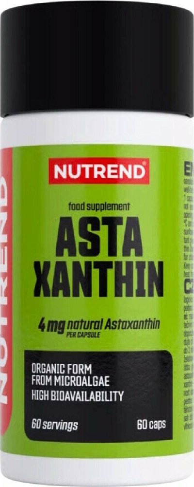 Mini listing claim: Nutrend Astaxanthin (60 kapslí) – přírodní astaxanthin z mikrořasy Haematococcus pluvialis, karotenoid rozpustný v tucích s dobrou biologickou dostupností, vhodný pro sportovní i běžný režim.