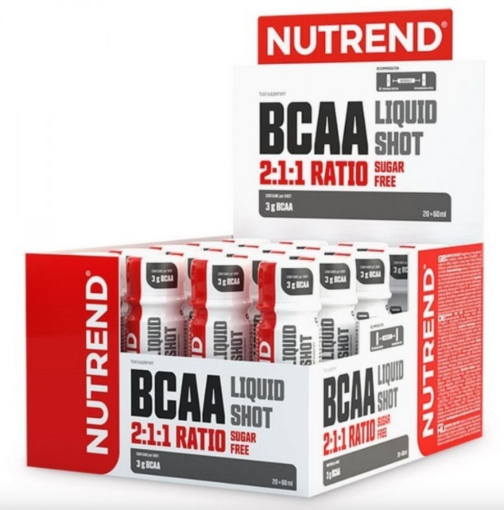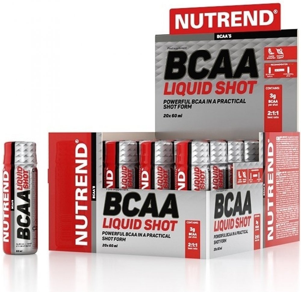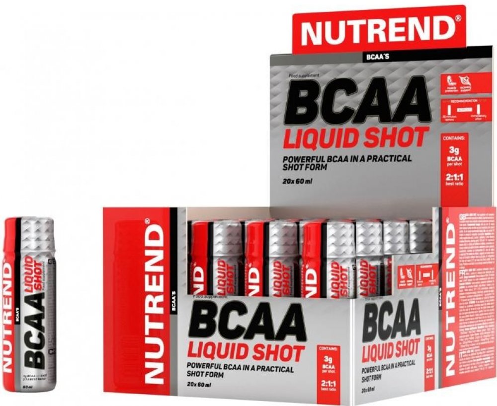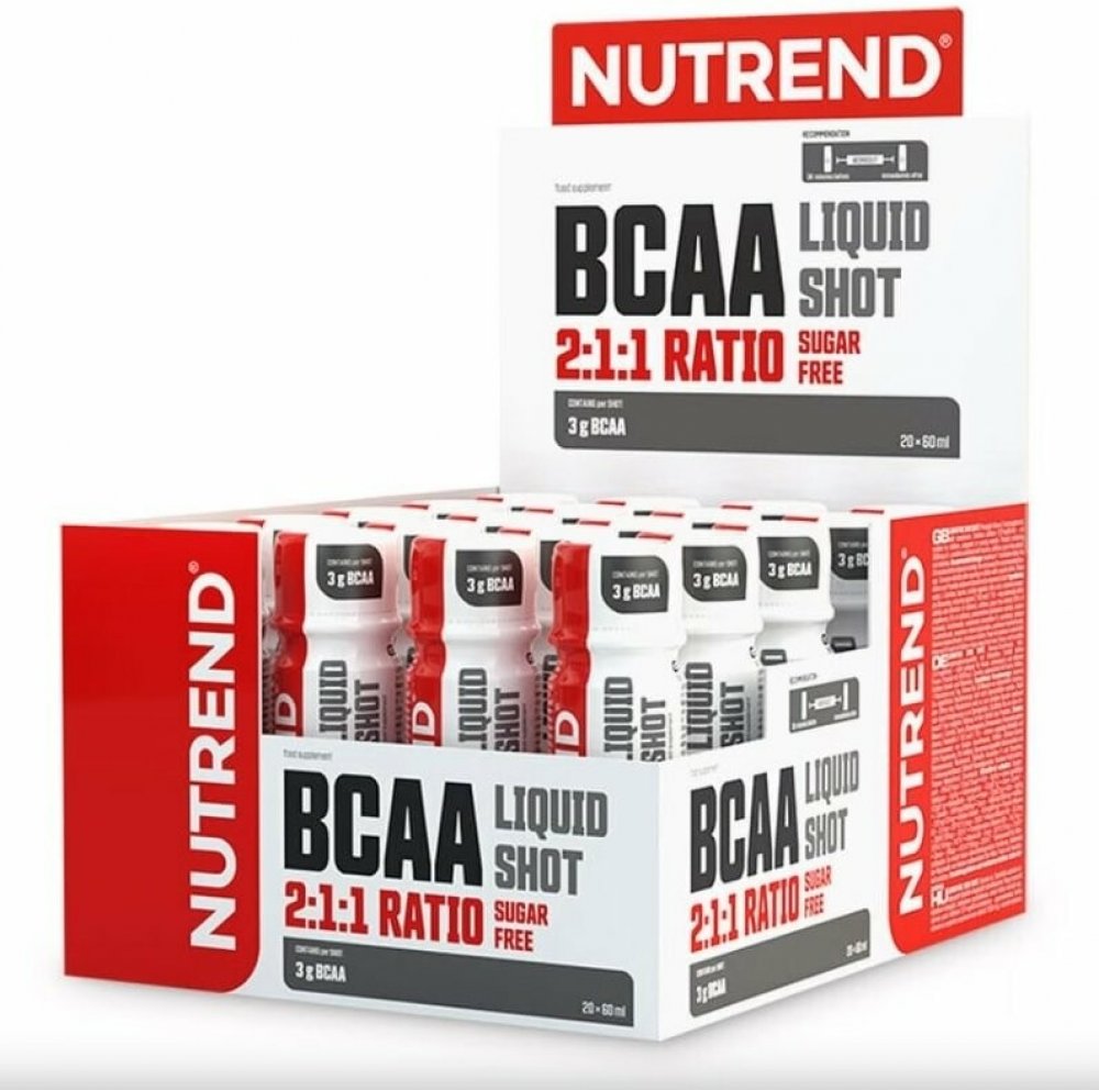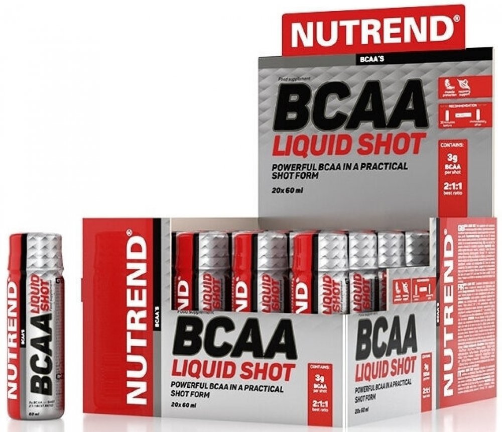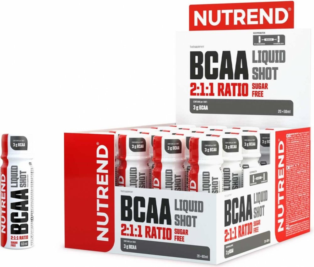 Esenciální větvené aminokyseliny L-leucin, L-isoleucin a L-valin (BCAA) v tekuté podobě, rozdělené do přesných dávek jednotlivých shotů. Tekutina představuje nejrychlejší možnost dodání aminokyselin a každý shot v sobě nese 3 g BCAA.