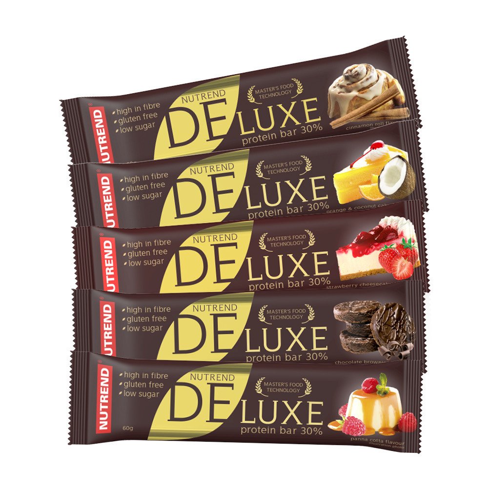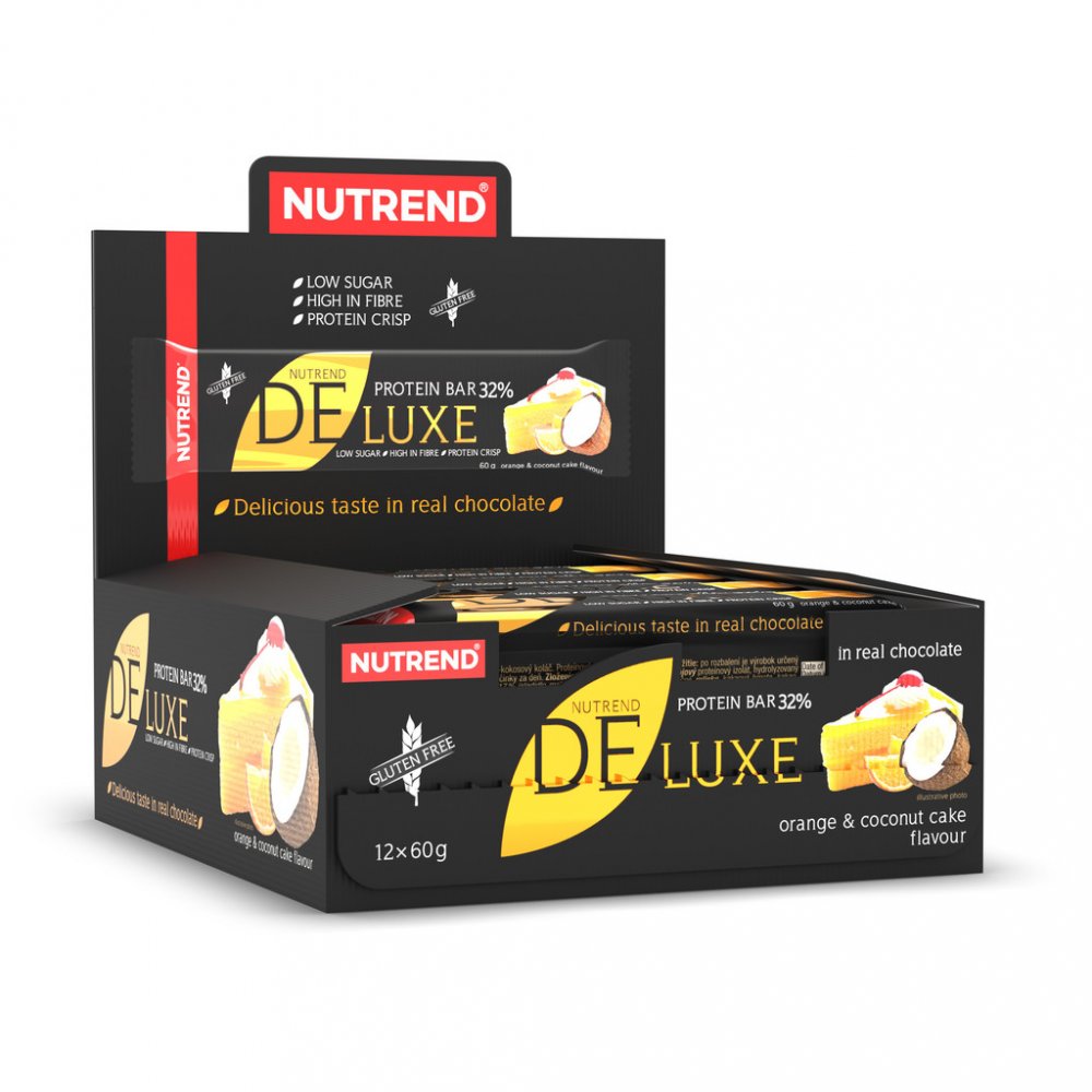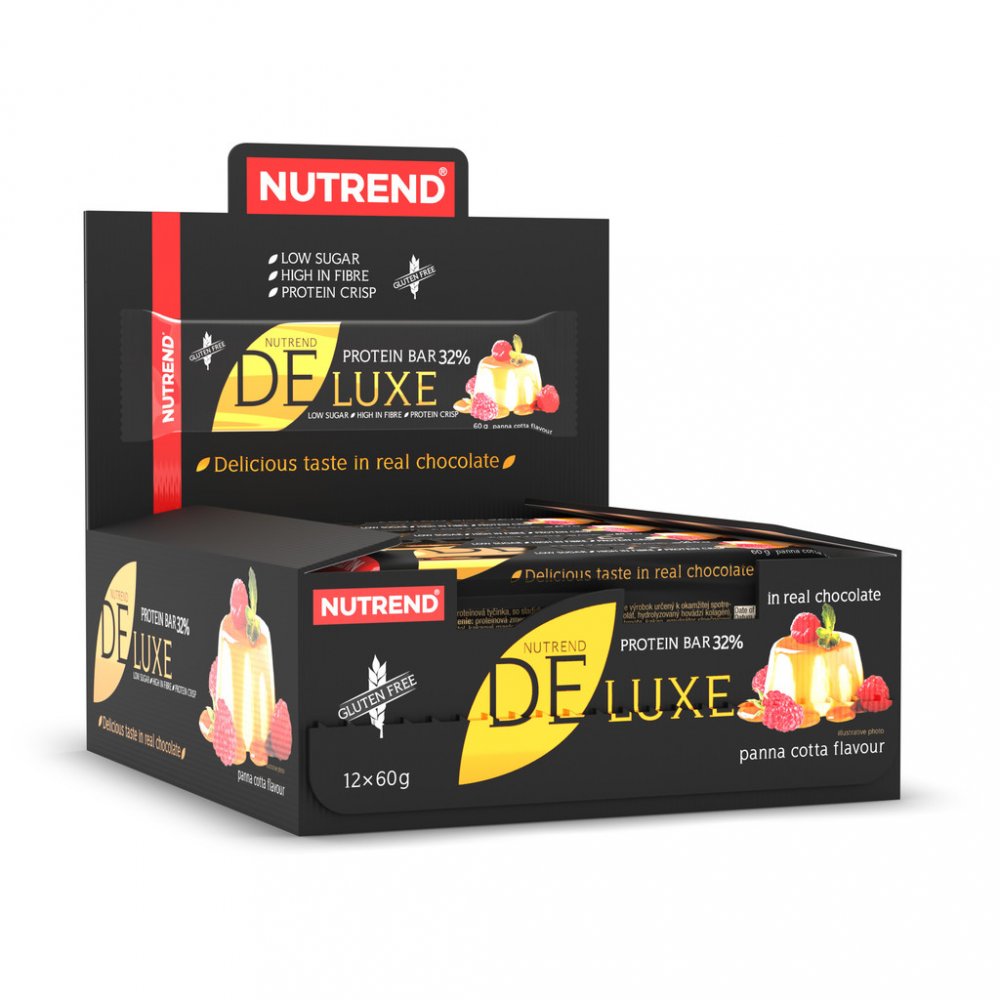 Nutrend DELUXE je vlajkovou lodí mezi proteinovými tyčinkami, která nabízí chuť a kvalitu daleko za hranicemi běžné produkce. Je ideální volbou pro aktivní sportovce i pro ty, kteří hledají zdravé snacky s vysokým obsahem proteinů a minimem cukrů. Tato tyčinka je navíc bez lepku a slazena steviolglykosidy ze Stevie.