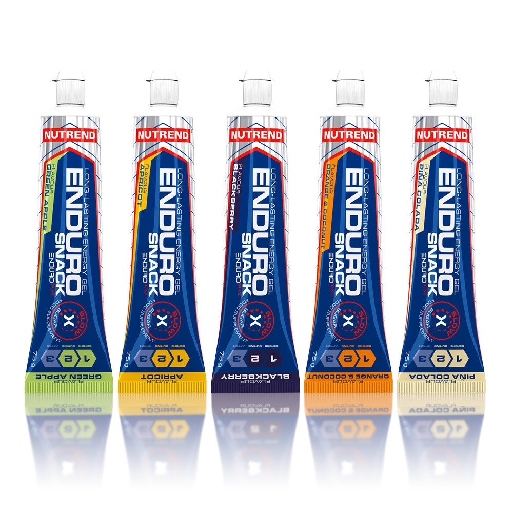 ENDUROSNACK GEL příchuť meruňka: voda, isomaltulóza - PalatinoseTM (je zdrojem fruktózy a glukózy), glukóza, zahušťovadlo xanthanová guma, taurin, glycin, L-leucin, L-alanin, regulátory kyselosti kyselina citrónová a kyselina jablečná, L-isoleucin, L-valin, aroma, konzervanty benzoan sodný a kyselina sorbová, L-karnosin, sladidla acesulfam K a sukralóza.
