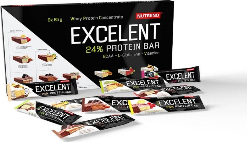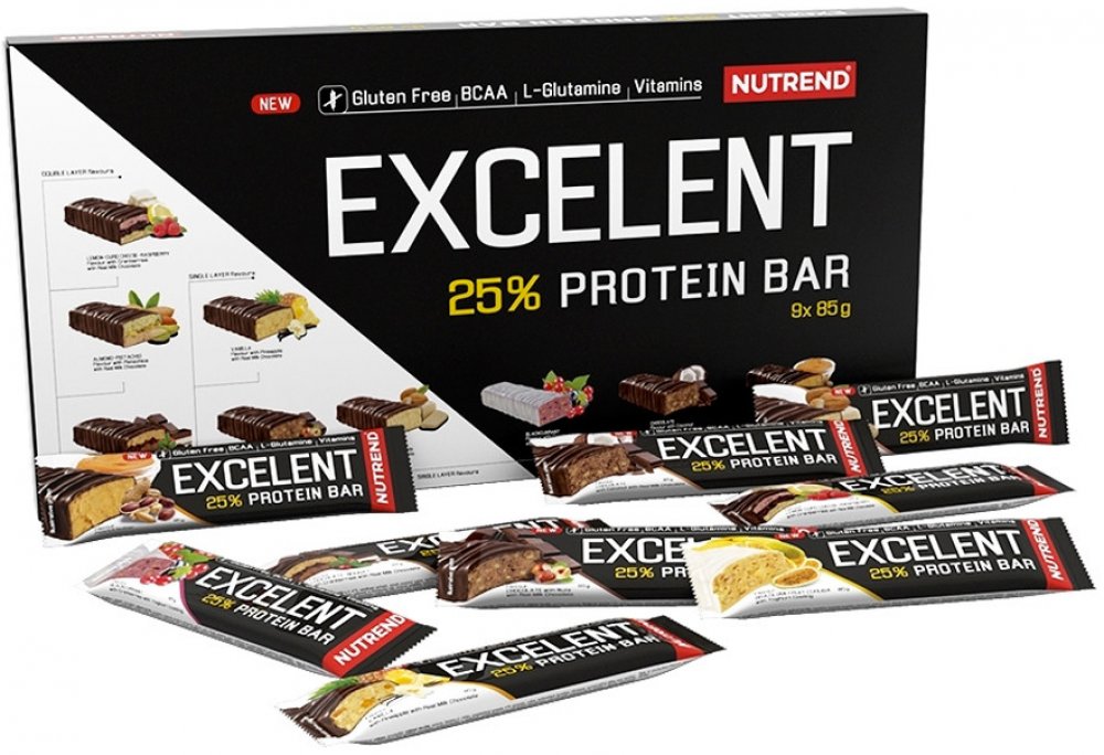 Proteinová tyčinka EXCELENT obsahuje aminokyseliny s rozvětveným řetězcem (BCAA), L-glutamin a je obohacena o vitamíny. V jedné tyčince je více než 21 gramů bílkovin, nová receptura je zcela bez trans tuků a bez lepku!