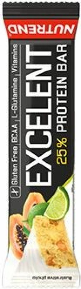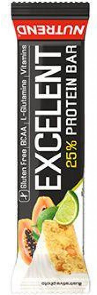 Oblíbená proteinová tyčinka Nutrend Excelent s lahodnou příchutí limetky a papáji v jogurtové polevě vás dokonale zasytí, ať už si ji dáte po sportovním výkonu nebo jako svačinku na cestách, ve škole či v zaměstnání. Tyčinka vám zajistí potřebnou energii, a především skvělou chuť! vysoký obsah bílkovinBCAA, L-glutamin, vitaminy bezlepkové složení SloženíProteinová směs (sójový proteinový izolát, syrovátkový proteinový koncentrát, sójové vločky), glukózo-fruktózový sirup, poleva jogurtová 13 % (cukr, rostlinný tuk (palmojádrový, palmový, bambucký), sušená syrovátka a jogurt, emulgátor sójový lecitin, regulátor kyselosti kyselina citronová, aroma, sůl), tekutý invertní cukr, rostlinný tuk (palmojádrový, palmový, bambucký), krém s příchutí vanilky (cukr, palmový a bambucký olej, sušená syrovátka, sušené odstředěné mléko, emulgátor sójový lecitin, aroma, barvivo E 160c), proslazená papája 3 % (papája, cukr, konzervant oxid siřičitý), kokos (kokos, antioxidant oxid siřičitý), rýžový extrudát (rýže, emulgátor E 471), emulgátor řepkový lecitin, L-glutamin, aroma, regulátor kyselosti kyselina citronová, zahušťovadlo guarová guma, antioxidant směs přírodních tokoferolů, nikotinamid, riboflavin. Může obsahovat stopy ořechů, arašídů a sezamu. UpozorněníPo rozbalení je výrobek určen k okamžité spotřebě. Proteinová tyčinka obohacená a vitamíny a glutamin. Není určena pro děti do 15 let. Chraňte ji před teplem, mrazem a vlhkostí.