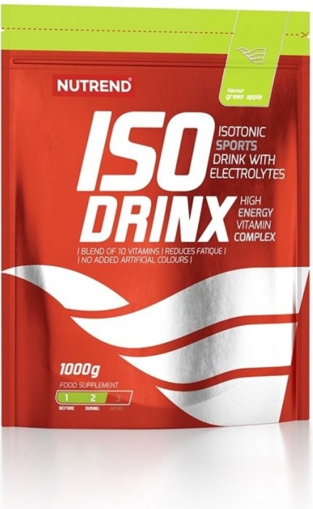 Složení: ISODRINX - příchuť zelené jablko: sacharóza, glukóza, maltodextrin, regulátor kyselosti kyselina citronová, aroma, citronan sodný, stabilizátor karagenan, chlorid sodný, regulátor kyselosti kyselina jablečná, glukonát vápenatý, vitaminový premix (kyselina L-askorbová, DL-α-tokoferylacetát, nikotinamid, D-pantothenát vápenatý, pyridoxin hydrochlorid, riboflavin, thiamin mononitrát, kyselina pteroylmonoglutamová, D-biotin, kyanokobalamin), glukonát draselný, protispékavé látky fosforečnan vápenatý a oxid křemičitý, citronan hořečnatý. Výrobek může obsahovat stopy sóji a mléčné bílkoviny.