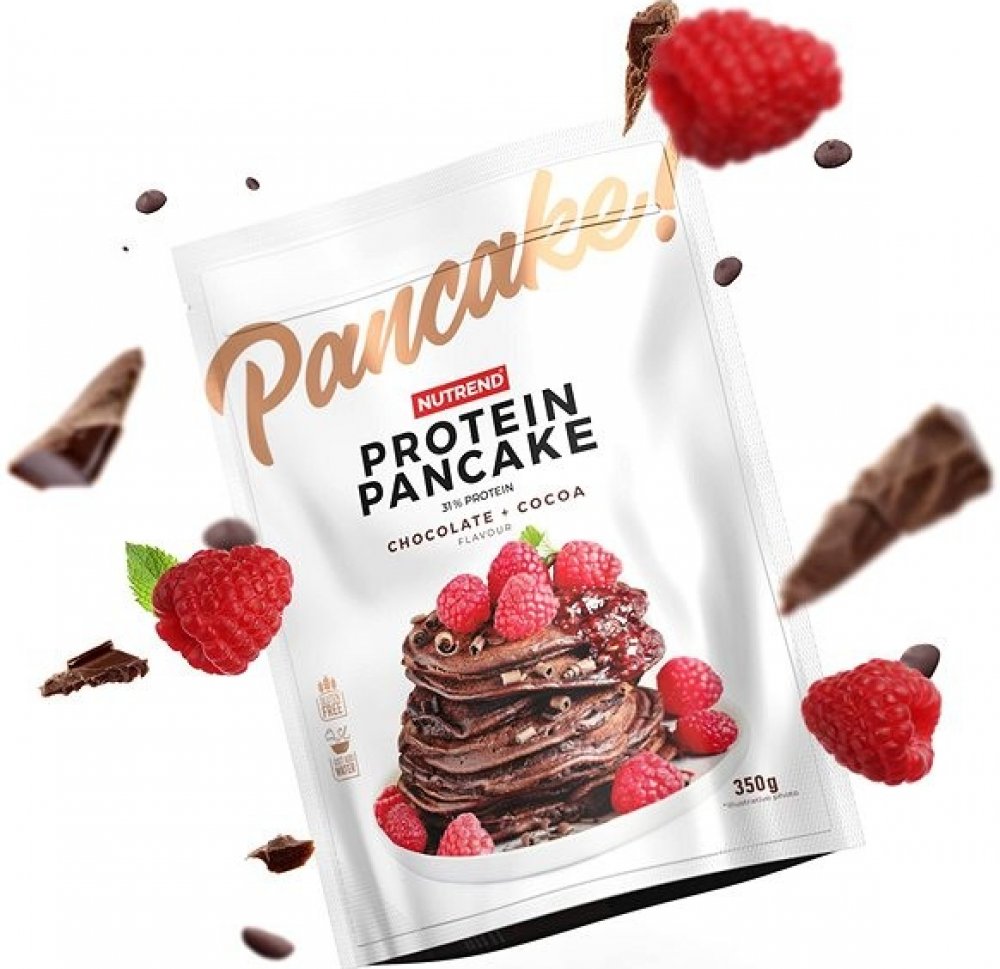 NUTREND Protein Pancake! čokoláda+kakao 350 g Připravte si vydatnou snídani s proteinovými palačinkami od Nutrend! Proteinové palačinky v prášku Protein Pancake jsou bohaté na bílkoviny, jejichž podíl tvoří až 31 %, což ocení i sportovci.