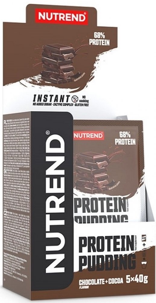 PROTEIN PUDDING příchuť čokoláda+kakao: 35 % mléčný proteinový izolát, 35 % syrovátkový proteinový koncentrát (obsahuje slunečnicový lecitin a protispékavou látku fosforečnan vápenatý), 13 % syrovátkový proteinový izolát (obsahuje slunečnicový lecitin), kakao, zahušťovadlo xanthanová guma, aroma, stabilizátor akáciová guma, protispékavá látka oxid křemičitý, směs trávicích enzymů Digezyme® (amyláza, proteáza, laktáza, lipáza a celuláza), sladidla sukralóza a steviol-glykosidy. Může obsahovat stopy sóji.