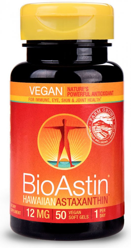 Havajský astaxanthin BioAstin obsahuje 12 mg astaxanthinu. Díky svému rostlinnému původu i složení softgelové kapsle je vhodný pro vegetariány i vegany a je certifikovaný jako bezlepkový, veganský produkt, ověřený jako - bez GMO. Neobsahuje sóju, laktózu ani konzervační látky.