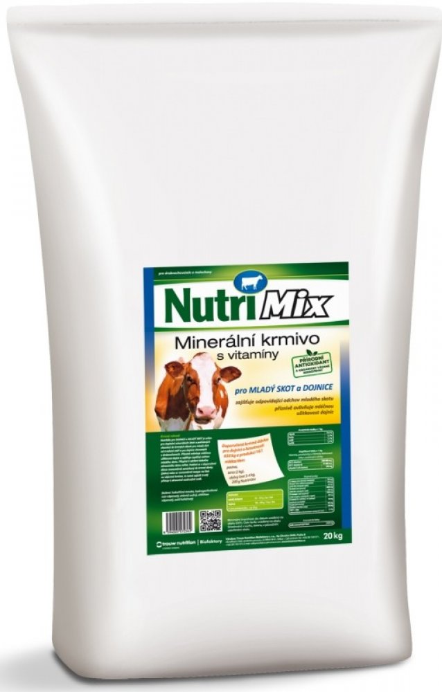 Nutrimix pro mladý skot a dojnice je určen pro doplnění minerálních látek a potřebných vitaminů do krmných dávek pro mladý skot od 6 měsíců stáří a pro dojnice chované v malochovech. Příznivě ovlivňuje mléčnou užitkovost dojnic a zajišťuje úspěšný odchov mladého skotu. Přispívá k udržení dobrého zdravotního stavu zvířat.