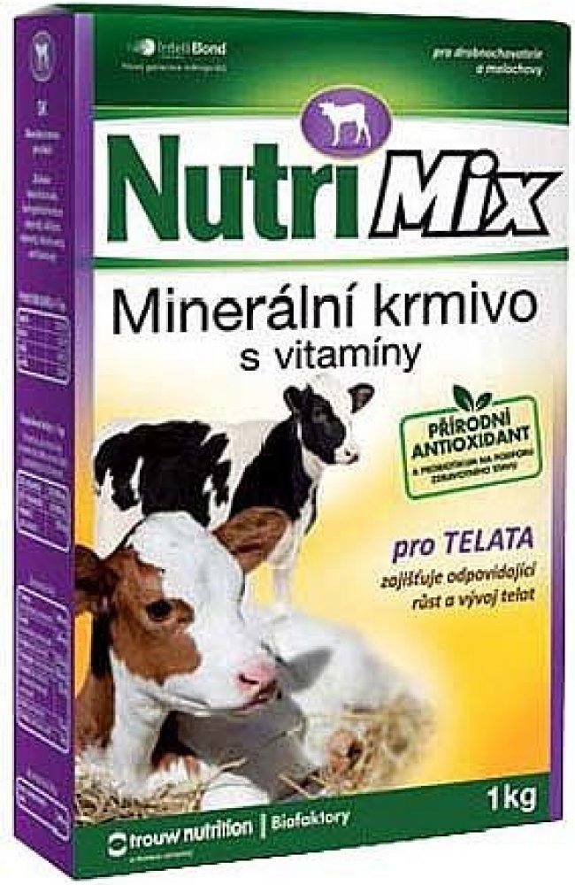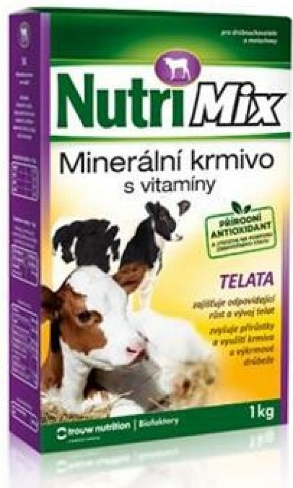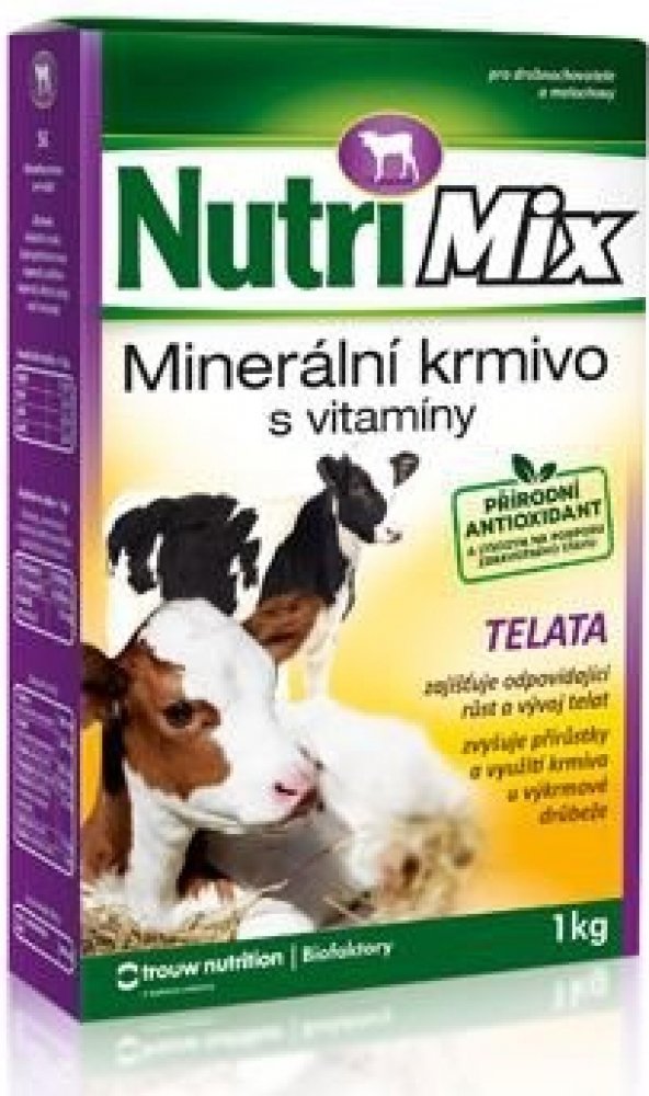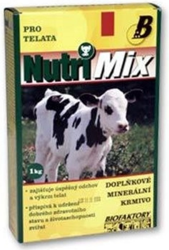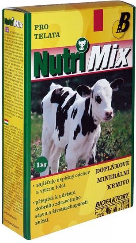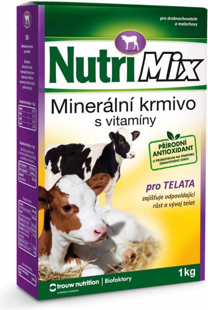 Krmný návod: Vitamino-minerální směs NUTRI MIX je určena pro telata do stáří 6 měsíců. Obsahuje biologicky účinné látky – vitamíny a minerální látky ve vysoce využitelné formě. Tato směs umožňuje chovatelům dokompletovat krmnou dávku a doplnit vitamíny a minerální látky na potřebnou úroveň. Podporuje dobrý stav a obranyschopnost organismu, zajišťuje úspěšný odchov a výkrm telat.