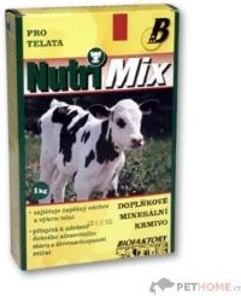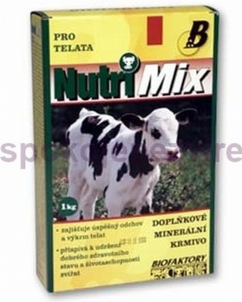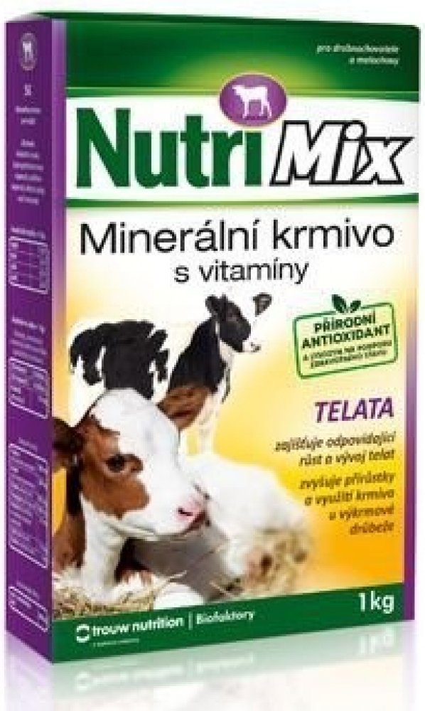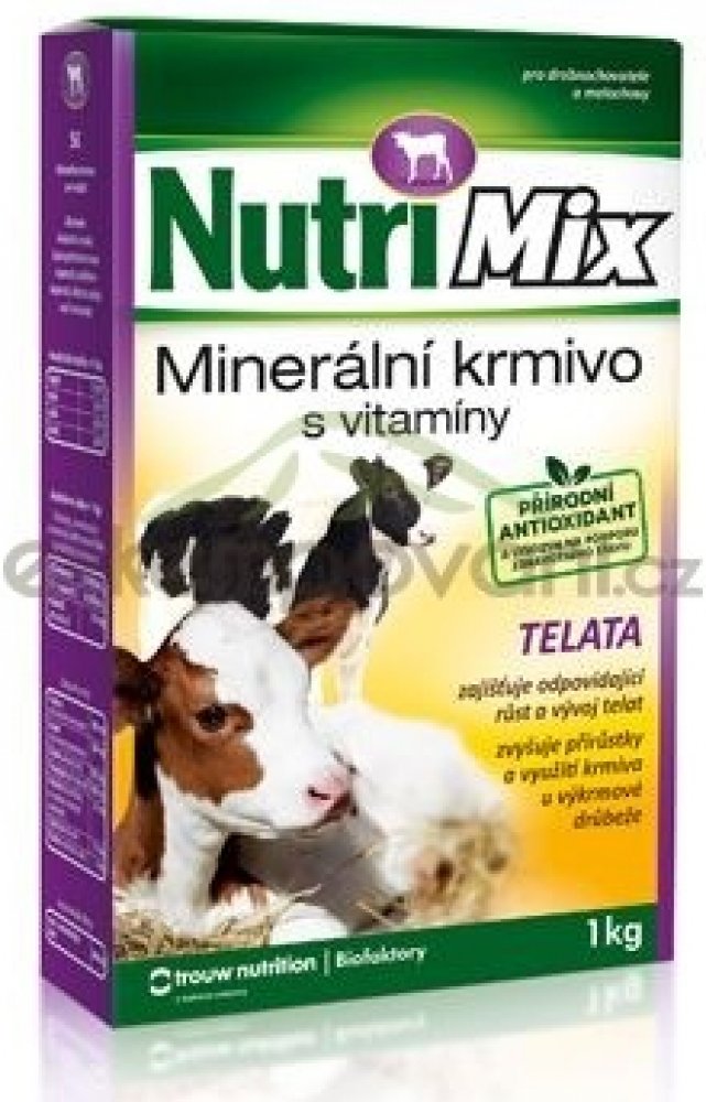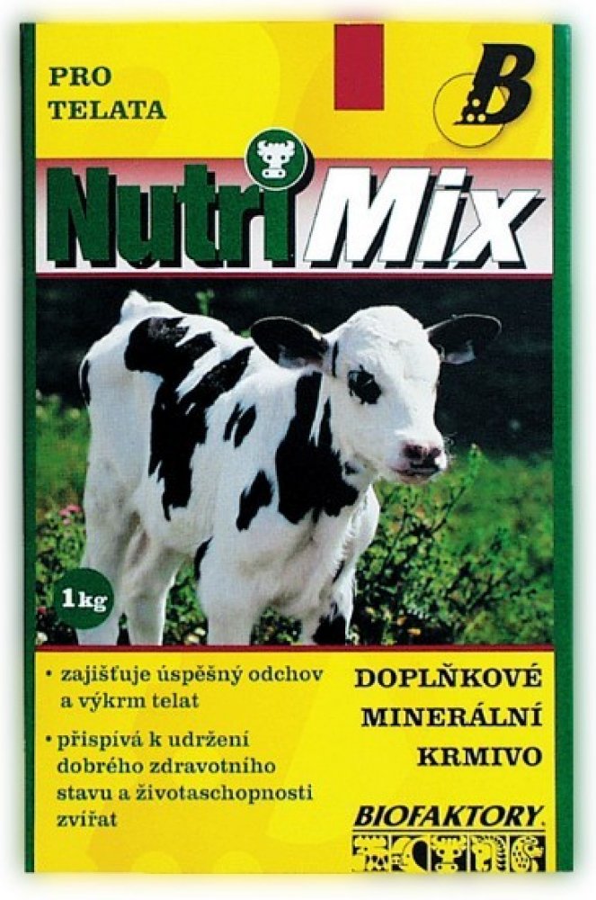 Krmný návod: Vitamino-minerální směs NUTRI MIX je určena pro telata do stáří 6 měsíců. Obsahuje biologicky účinné látky – vitamíny a minerální látky ve vysoce využitelné formě. Tato směs umožňuje chovatelům dokompletovat krmnou dávku a doplnit vitamíny a minerální látky na potřebnou úroveň. Podporuje dobrý stav a obranyschopnost organismu, zajišťuje úspěšný odchov a výkrm telat.