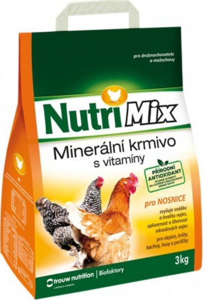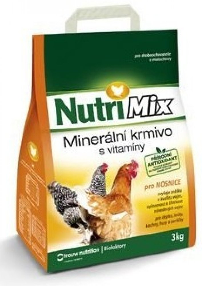 Nutrimix D je nenahraditelné doplňkové krmivo s vitaminy pro nosnice, zvyšuje snášku a kvalitu vajec, oplozenost a líhnivost násadových vajec pro slepice, krůty, kachny, husy, perličky atd. Toto vitominerální doplňkové krmivo nám pokryje i vývojové období od 4 měsíce, až po dobu snášky 6 -tý měsíc a dále.