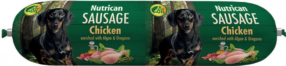 pes o váze 10 - 30 kg = denní dávka salámu Nutrican Sausage 350 - 750 g