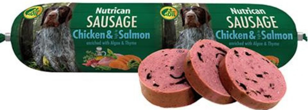 pes o váze 30 - 60 kg = denní dávka salámu Nutrican Sausage 750 - 1 300 g