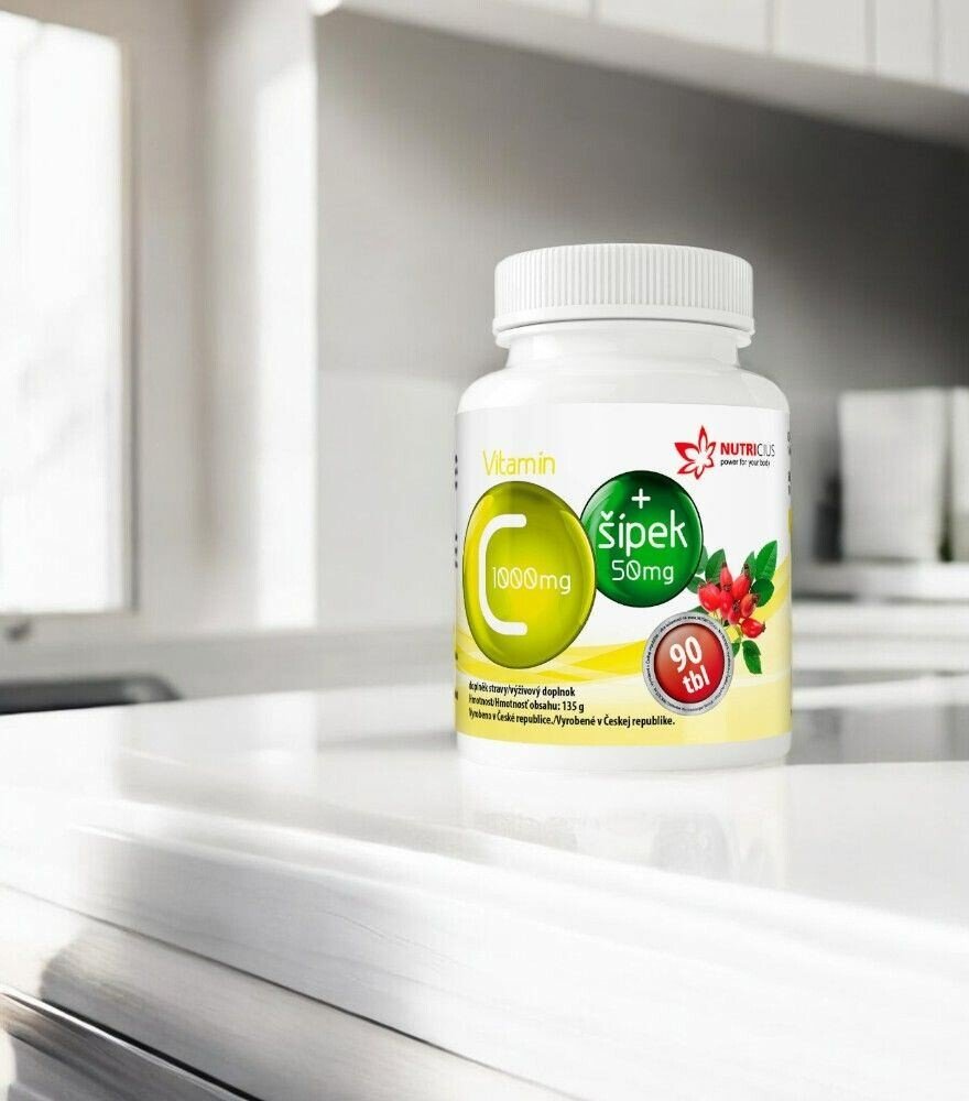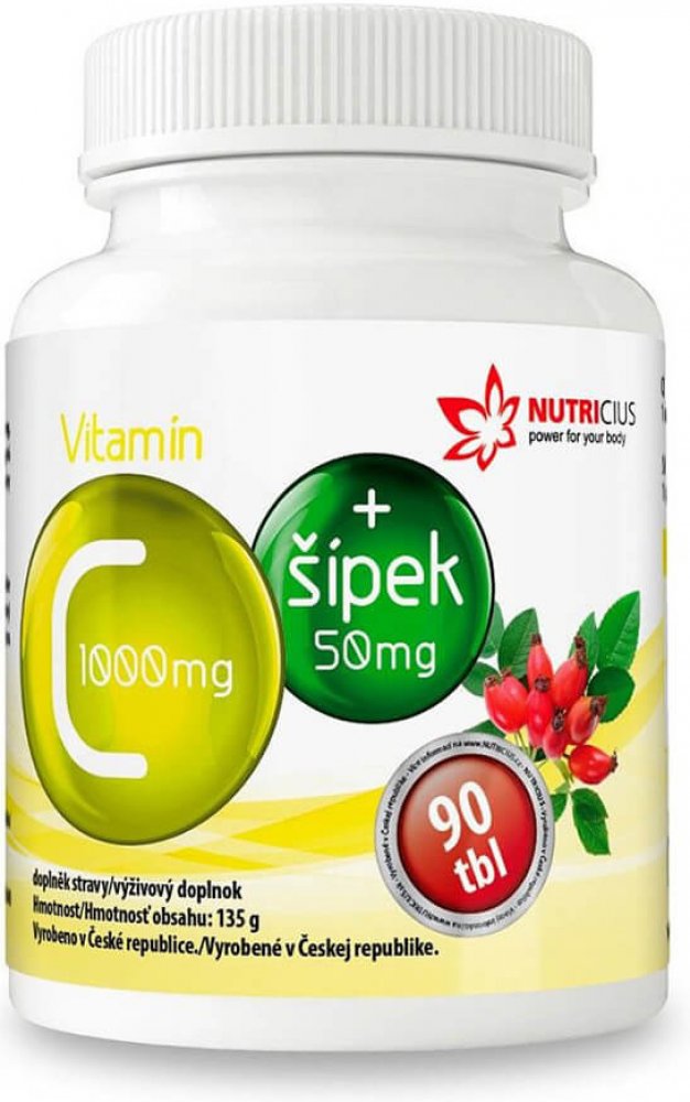 1000 mg vitamín C (L-askorbová kyselina), 50 mg šípek (extrakt z šípku)