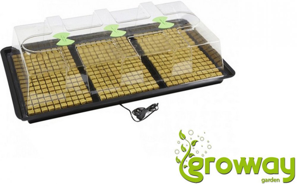 Velký vyhřívaný skleník X-Stream Heat L je vhodný pro rozmnožování a profesionální péči o malé rostliny. Tři pěstební plochy pojmou celkem 3x150 pěstebních kostiček z rockwoolu. Automatické vytápění zajistí sazenicím a řízkům dostatečný komfort v těch nejkritičtějších dnech. Vývoj rostlin lze kontrolovat přes 100% průhledný vrchní kryt s ventilačními klapkami.