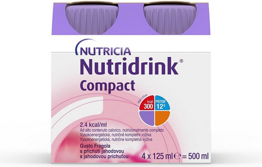 Nutridrink Compact s jahodovou příchutí je potravina pro zvláštní lékařské účely určená pro dietní režim při podvýživě související s onemocněním. Jedná se o vysoce energetickou, nutričně kompletní tekutou výživu ve formě perorálního roztoku, která je přizpůsobena potřebám pacientů se sníženým příjmem potravy nebo se zvýšenými výživovými nároky.