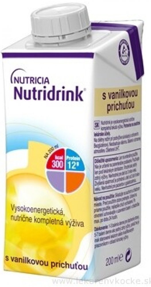 Nutridrink je vysokoenergetická nutričně kompletní tekutá výživa. Potravina pro zvláštní lékařské účely. Pro řízenou dietní výživu při podvýživě související se nemocí. Bez lepku. Neobsahuje vlákninu. Čtěte podrobně příbalový leták.