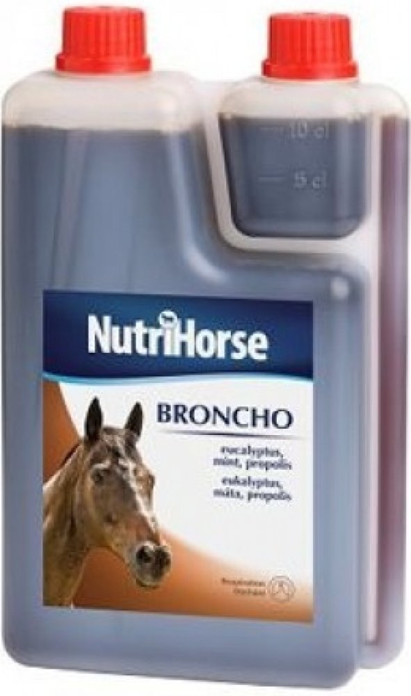 NutriHorse BRONCHO je tekutý přípravek, který obsahuje zdraví prospěšný eukalyptus a mátu. Tyto byliny byly využívány po staletí na léčbu kašle a při podráždění horních cest dýchacích. Zlepšuje kvalitu dýchání u koní.